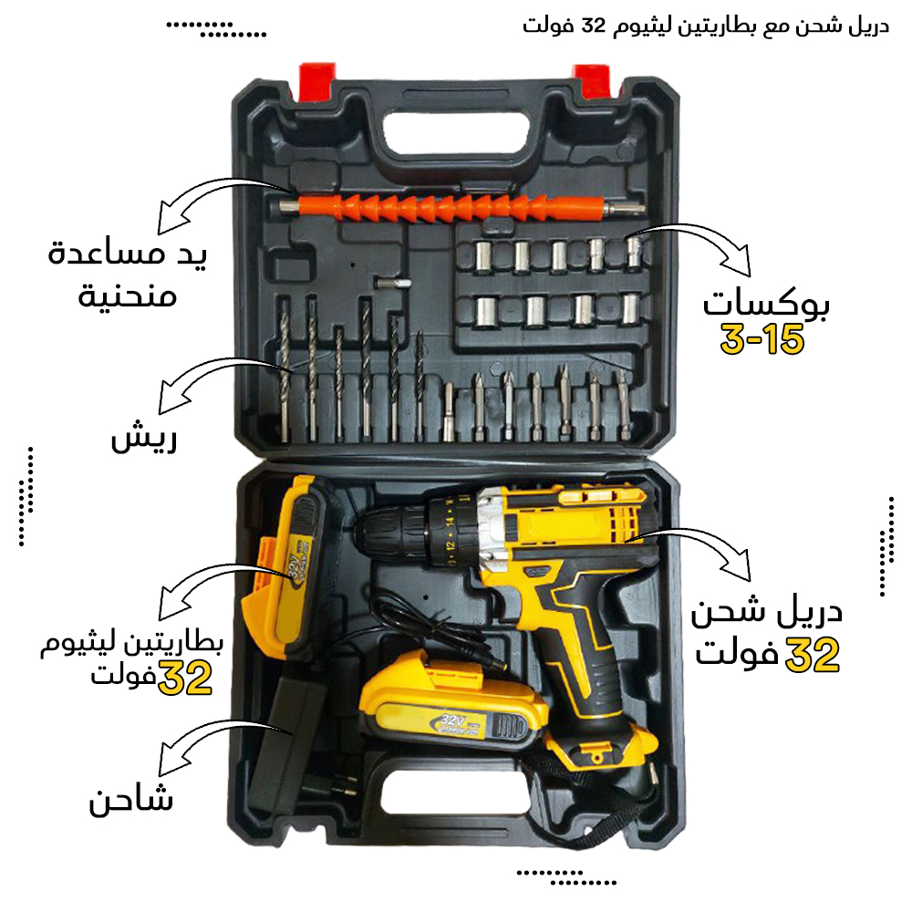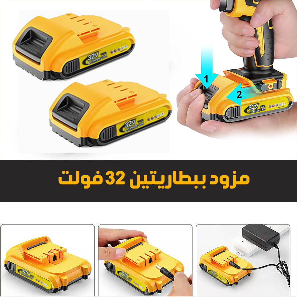 دريل شحن مع بطاريتين ليثيوم 32 فولت