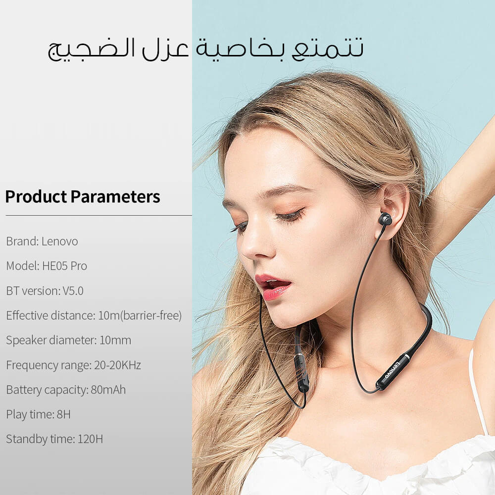 مؤرشف Q0 سماعات رياضية بلوتوث لاسلكية مع مايكروفون Lenovo HE05 Neckband Earphones Sports Wireless