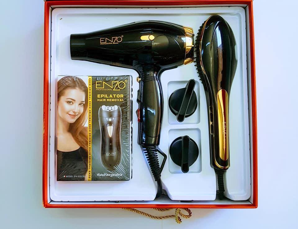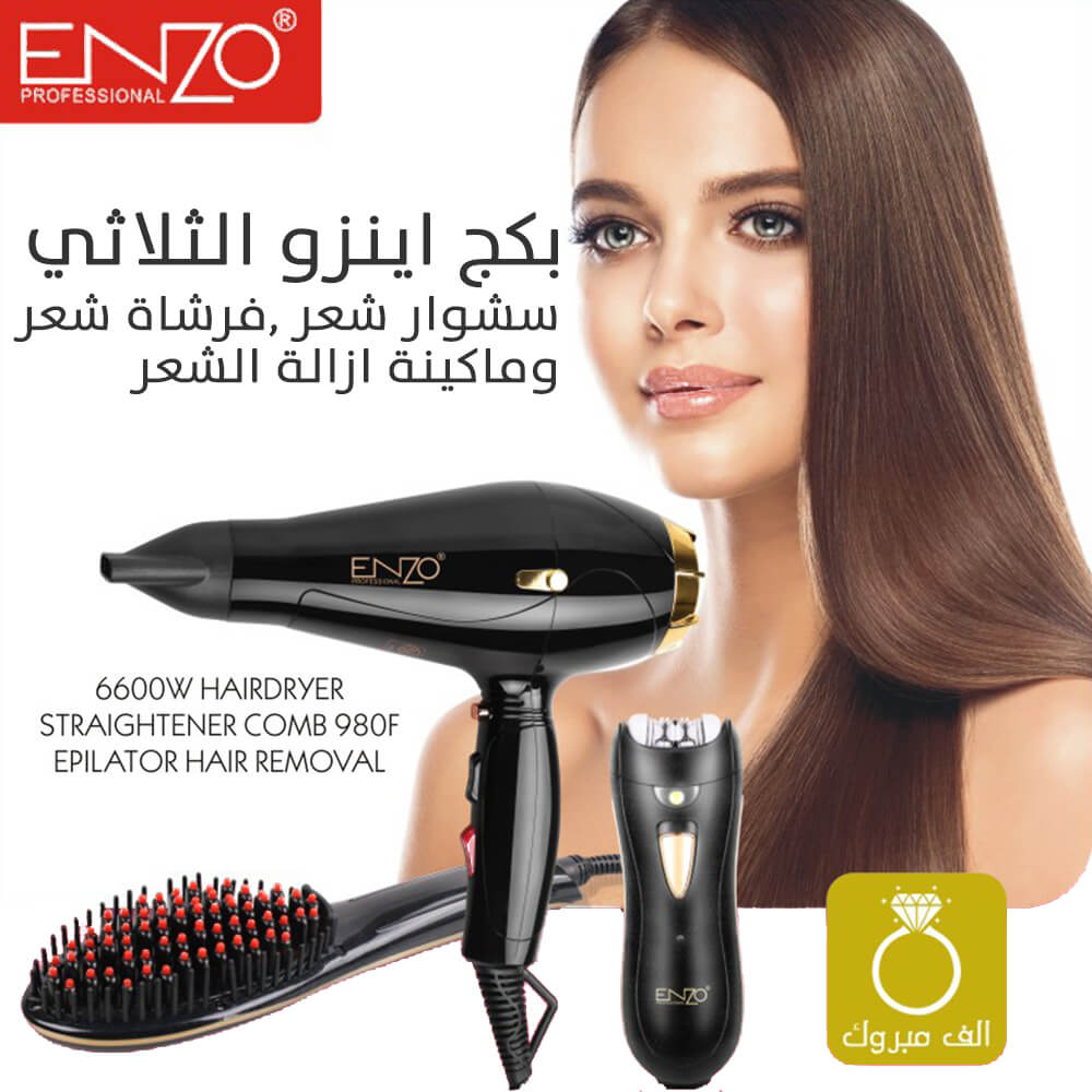 بكج اينزو الثلاثي سشوار شعر ,فرشاة شعر وماكينة ازالة الشعر Enzo