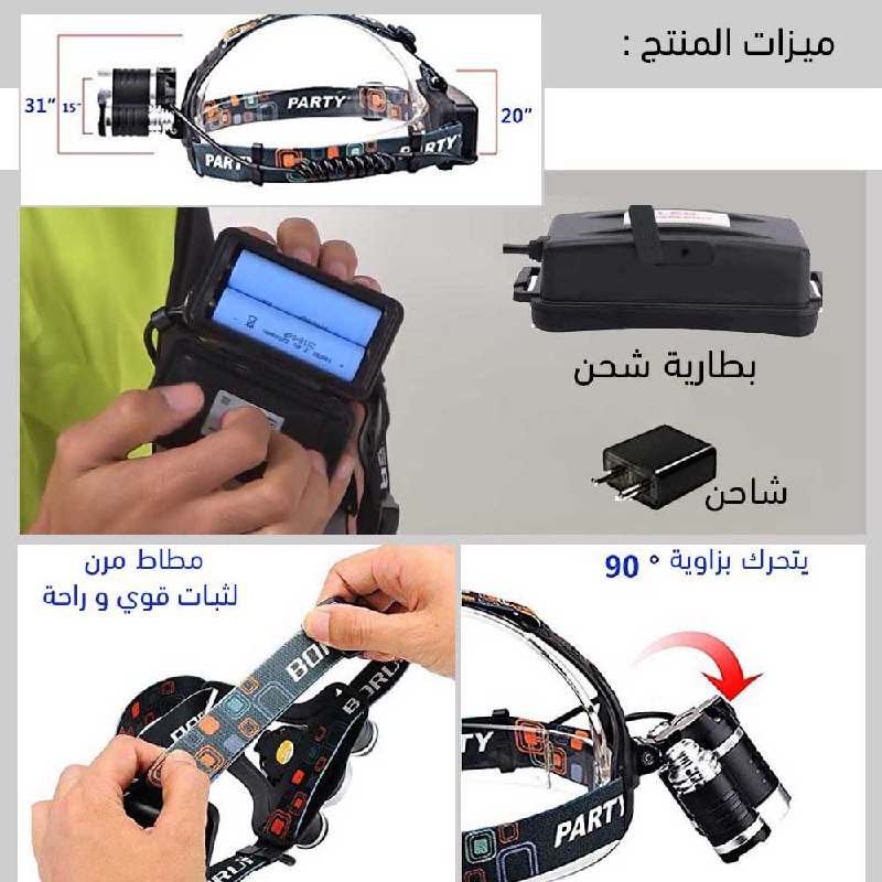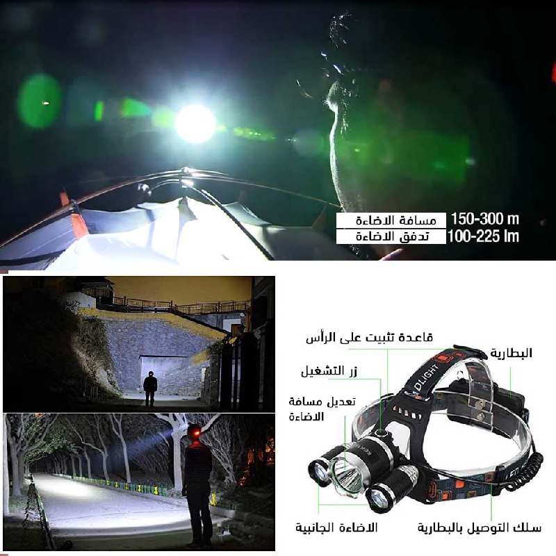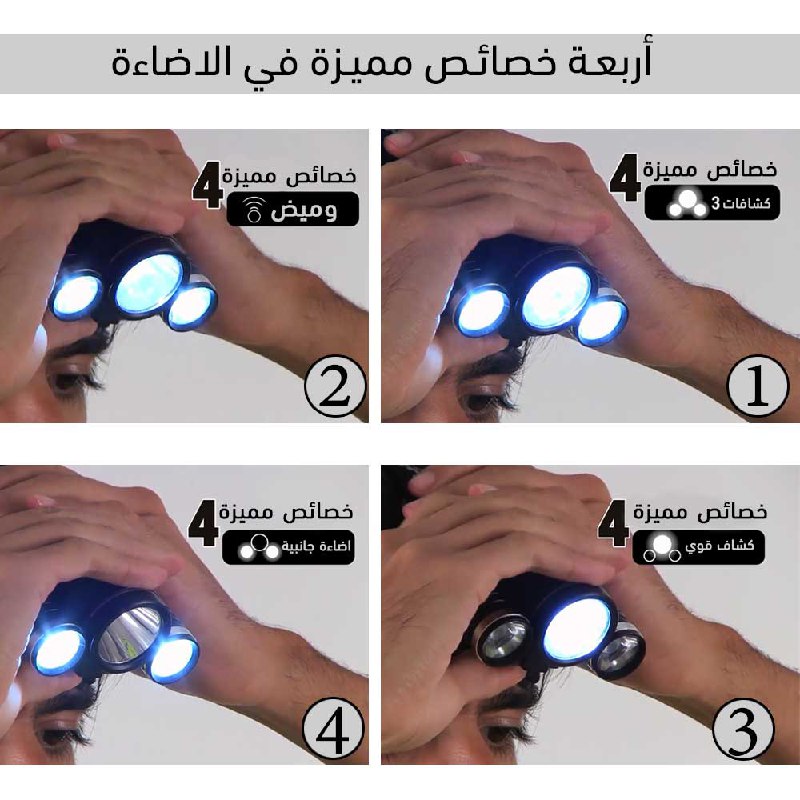 مؤرشف كشاف ثلاثي شحن بضوء عالي للرأس