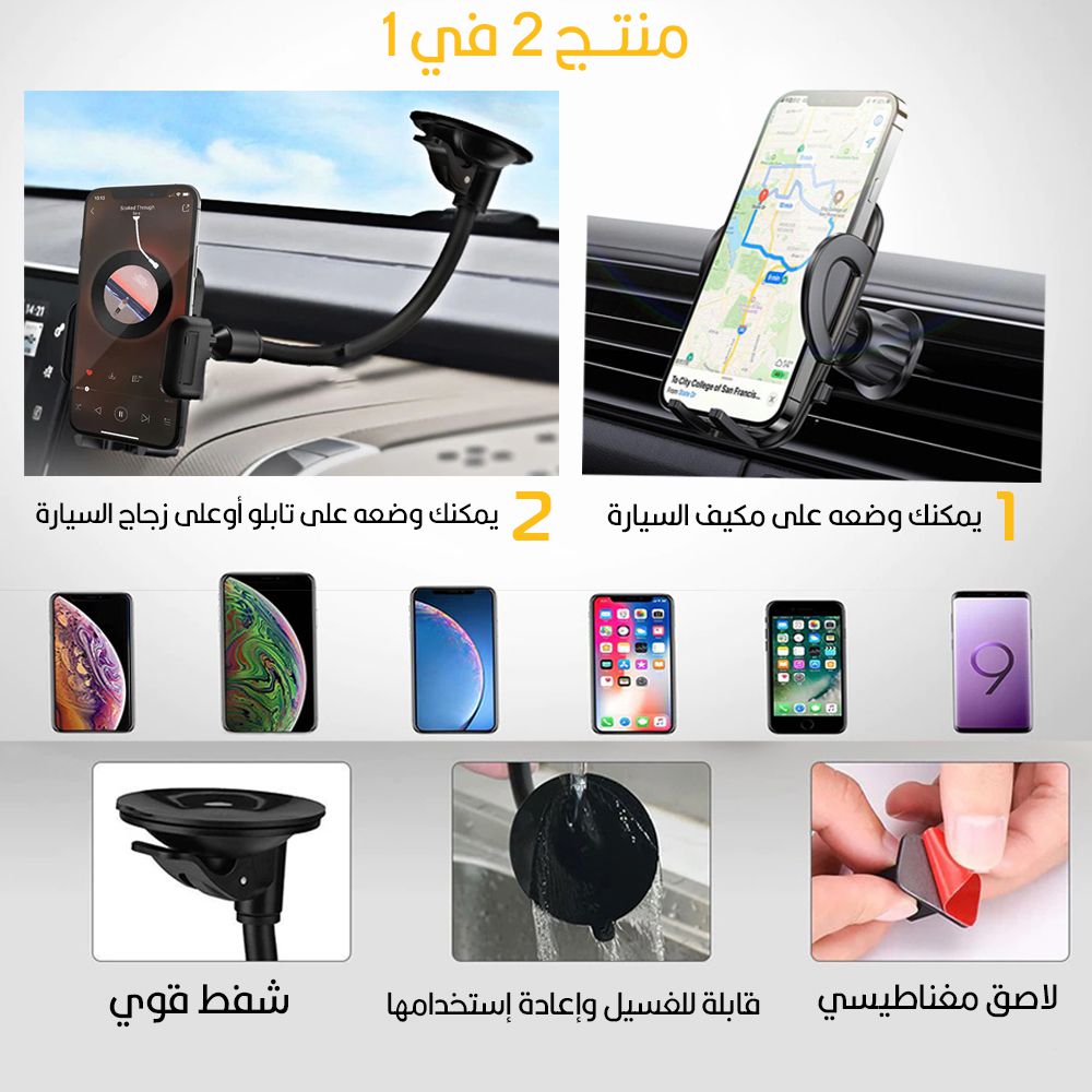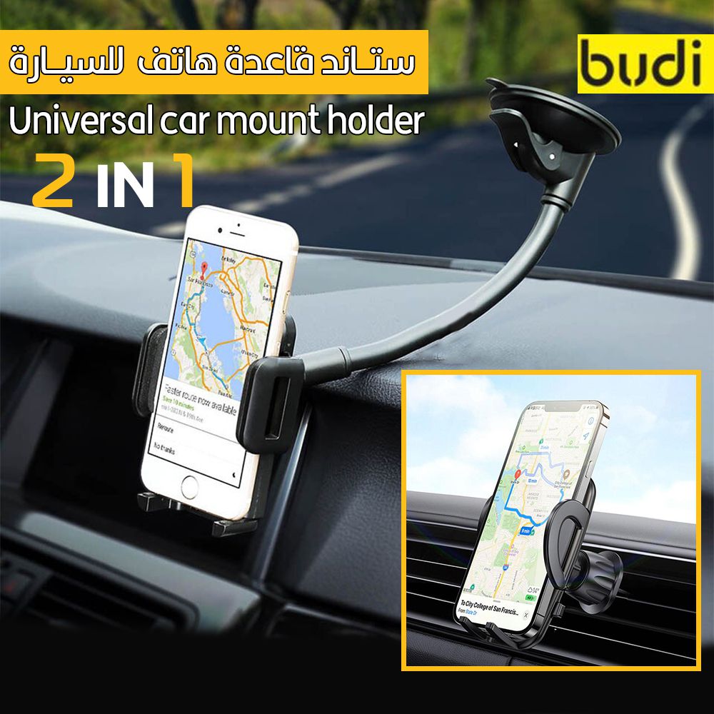 مؤرشف Q0 ستاند قاعدة هاتف للسيارة 2 في 1 Budi Car Mount Holder