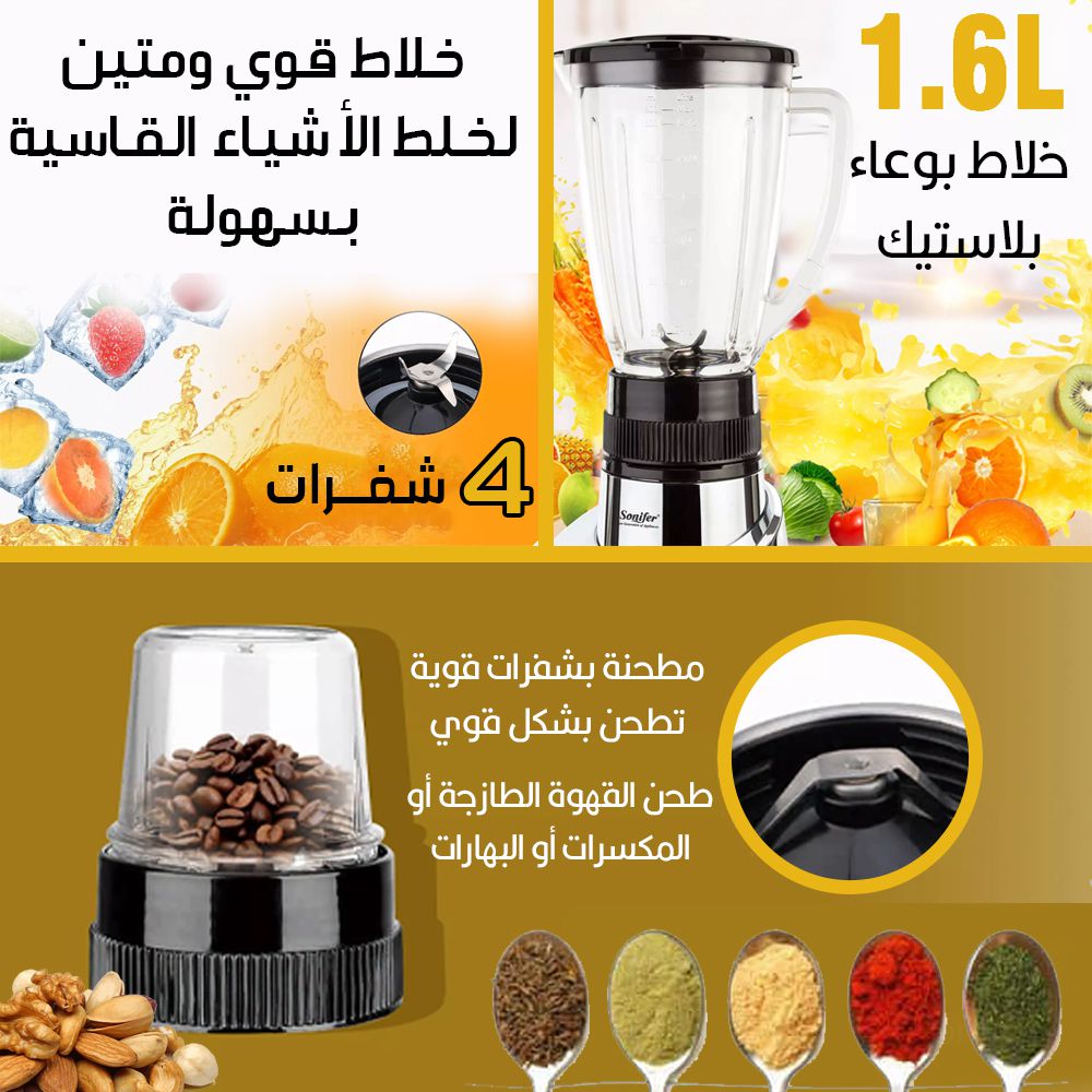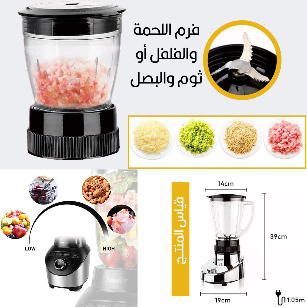 مؤرشف Q0 خلاط ومفرمة ومطحنة متعدد الإستخداماتSONIFER 3IN 1