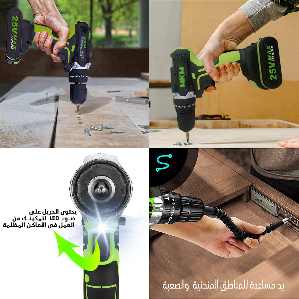 مؤرشف مؤرشف Q0 دريل شحن 25V Mkm مع عدة وبطاريتين ليثيوم