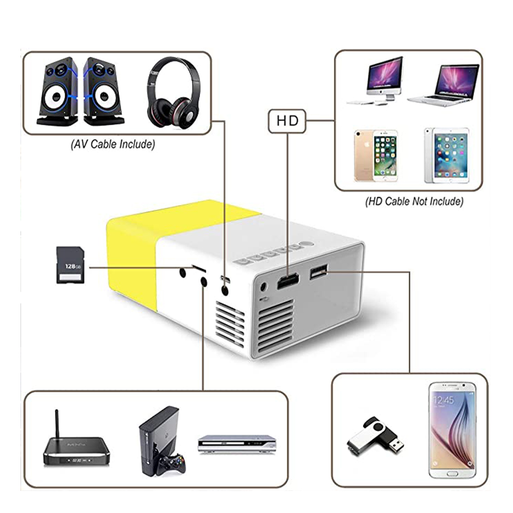 جهاز بروجيكتور محمول يعمل على الشحن/الكهرباء LED Portable Mini Projector Full HD 1080P