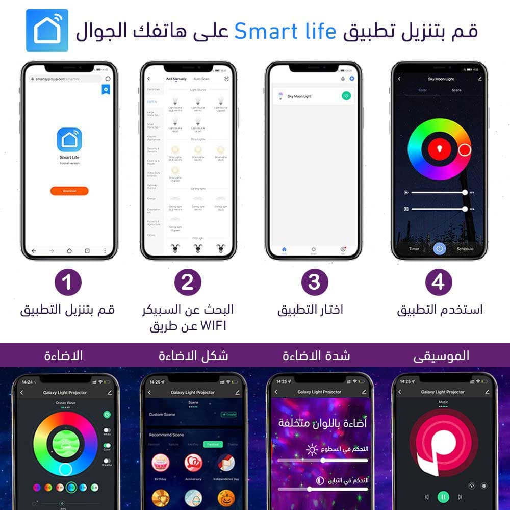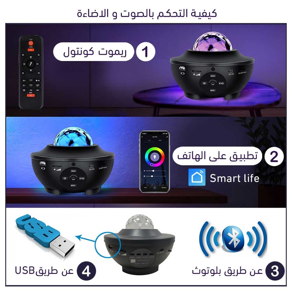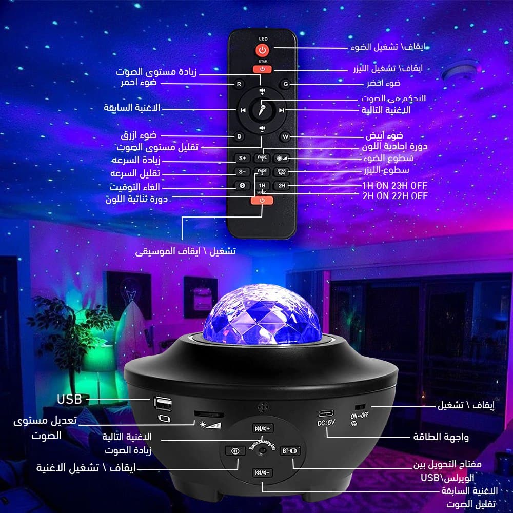 بروجيكتور اضاءه الفضاء مع تطبيق وسبيكر