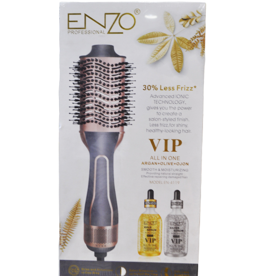 مؤرشف فرشاة الشعر الحرارية من إنزو مع علبتين سيروم للشعر بزيت الارغان Enzo MODEL: EN-4119