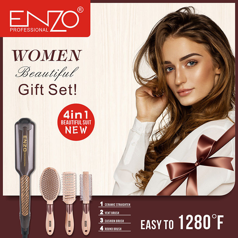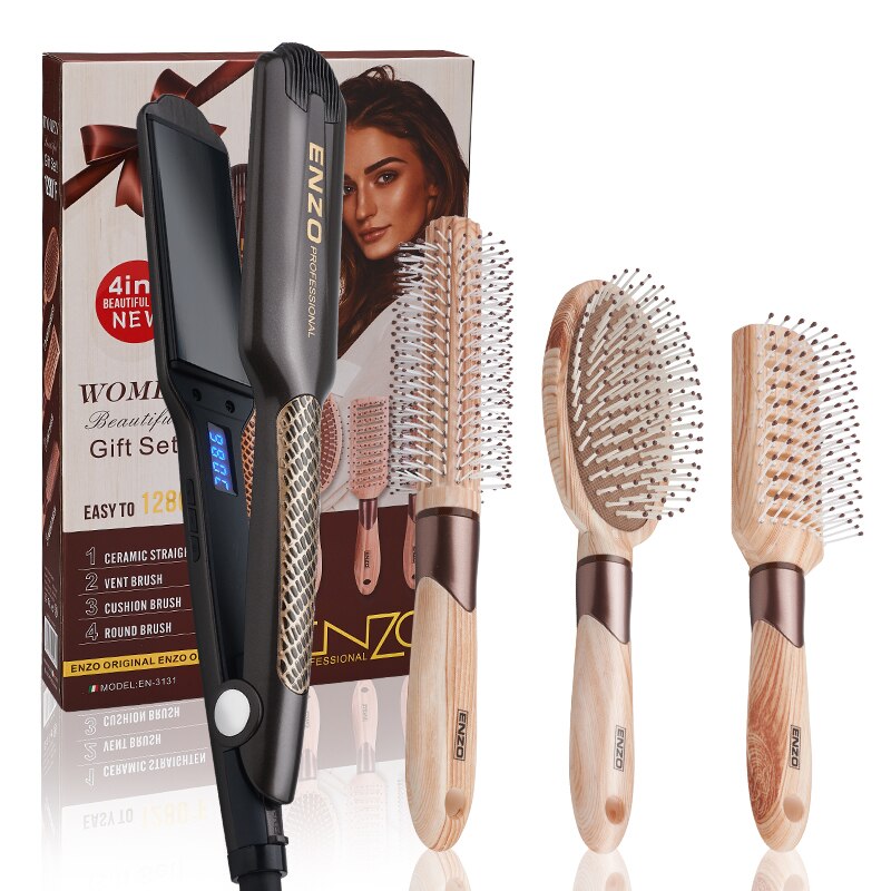 مؤرشف مملس الشعر الحراري 4 في 1 مع مشط عدد 2 وفرشاة شعر من إنزو ENZO MODEL: EN-3131