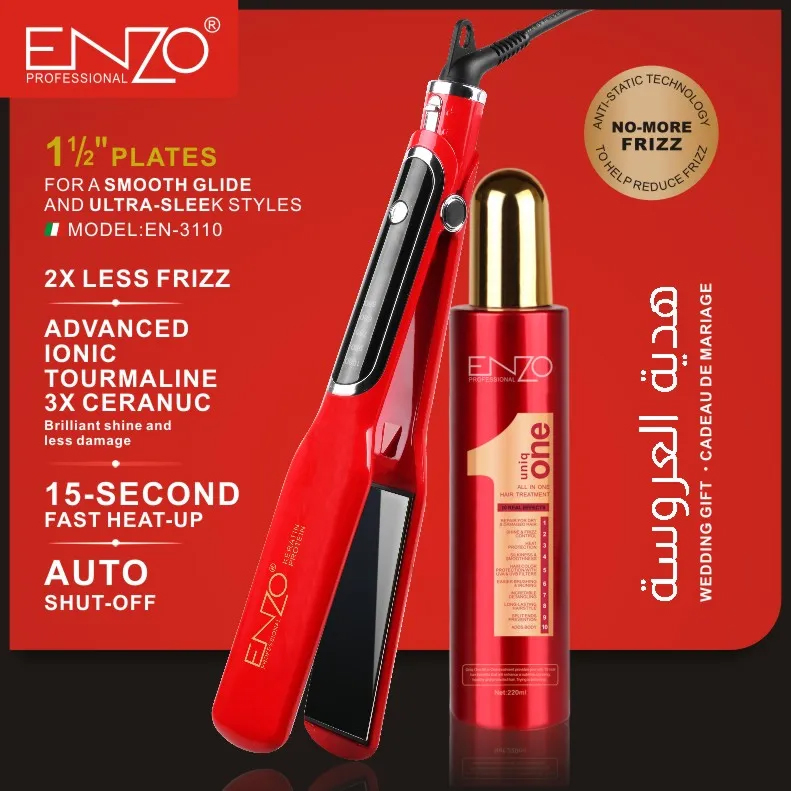 مؤرشف مملس الشعر الحراري مع علبة زيت الكيراتين من إنزو ENZO MODEL: EN-3110