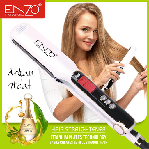 للمزيد من المنتجات اضغط هناعملية تمليس شعرك ستكون أكثر سهولة وفعالية الان مع مملس الشعر الاحترافي من Enzo دون عناء التنقل الى صالونات الحلاقة، مصنوع من صفائح التيتانيوم الفعالة والمناسبة لجميع أنواع الشعر، كما يتيح لك تعديل درجات الحرارة بسهولة بفضل شاشة LCD ليمنحك نتائج مبهرة واطلالة رائعة.