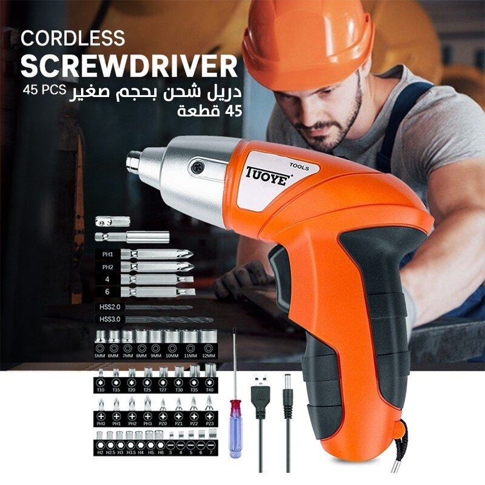 مؤرشف دريل شحن بحجم صغير ٤٥ قطعه 45pcs Cordless Screwdriver
