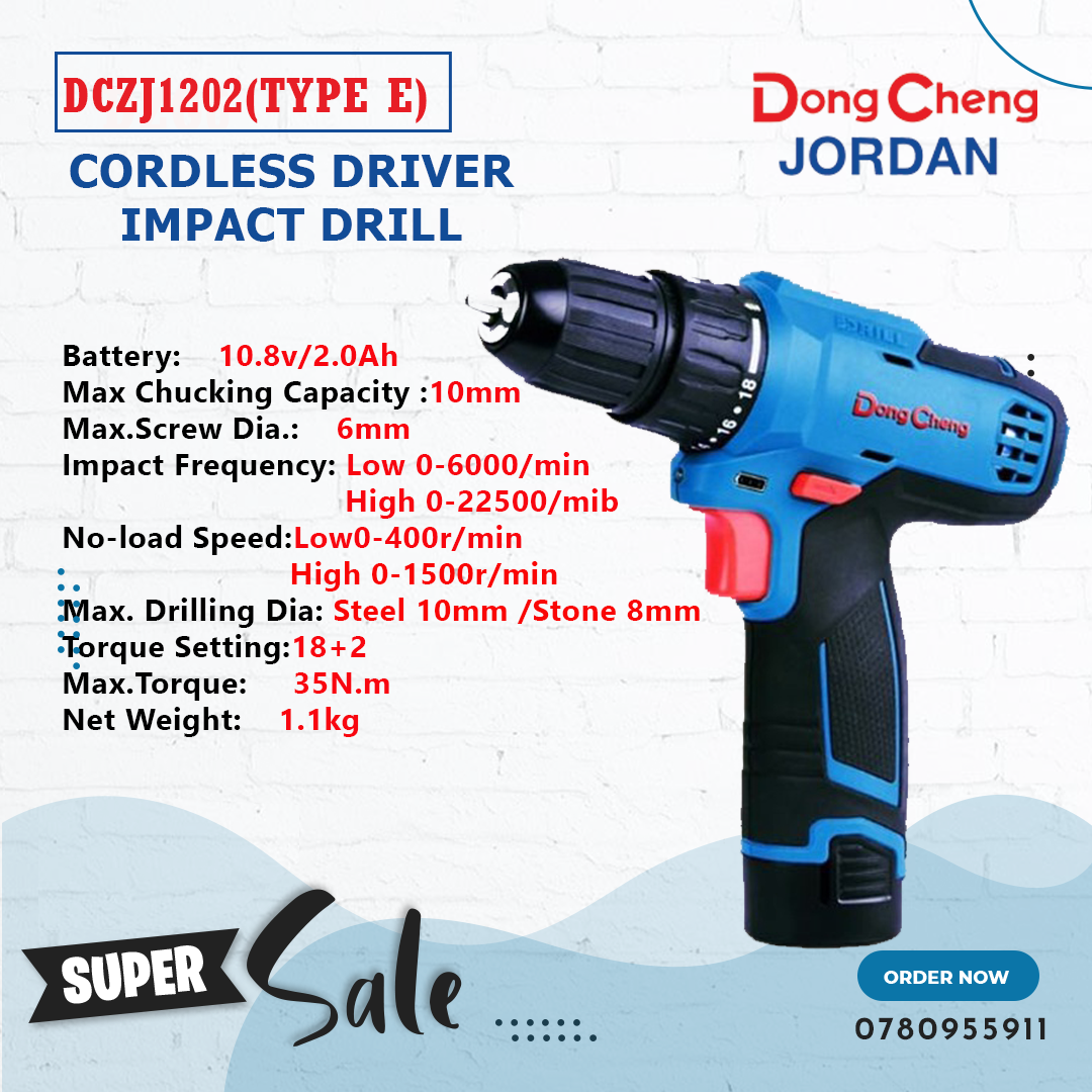• Battery: 10.8V/2.0Ah × 2 • Max. Chucking Capacity: 10mm • Max. Torque: 35N·m • Torque Setting: 18+1 • No-load Speed Low: 0-400r/min, High: 0-1500r/min • Max. Drilling Capacity Steel: Φ10mm, Wood: Φ22mm • Net Weight: 1kg Accessories & Package • Battery Charger • 2.0Ah Slide Battery Pack (2pcs) • Driver Bit • Plastic Case Packing