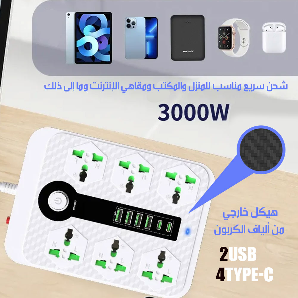 6مقابس كهربائية /6 POWER SOCKET 4 USB 2 Type-C