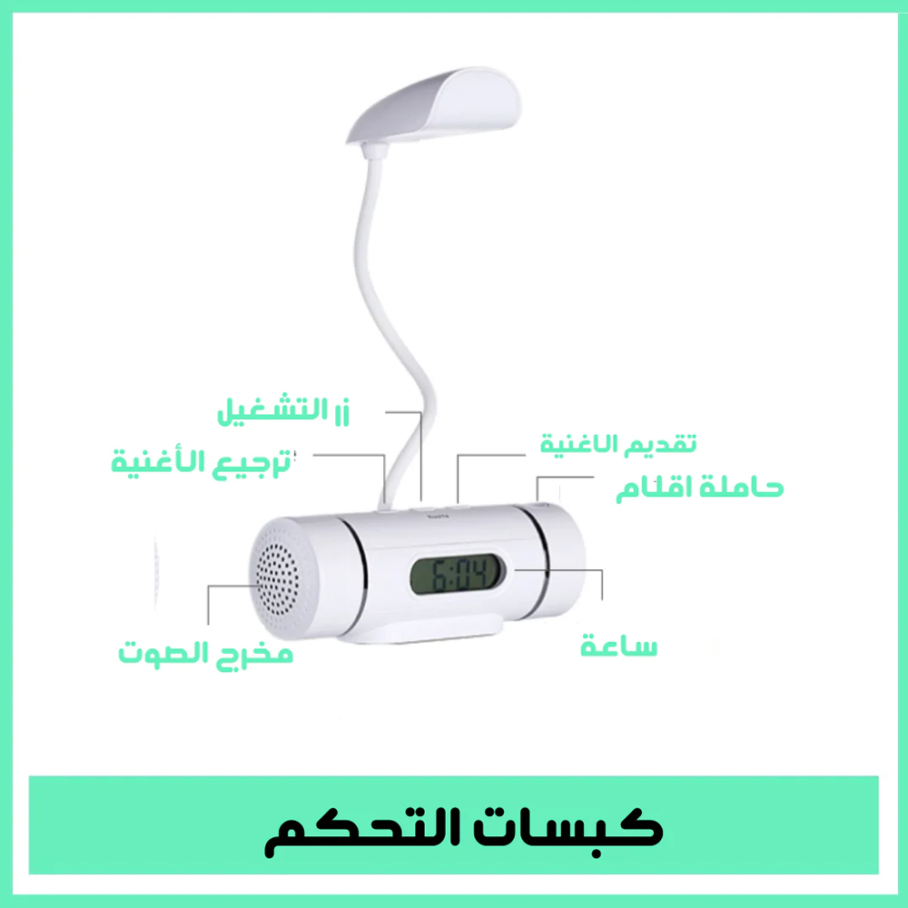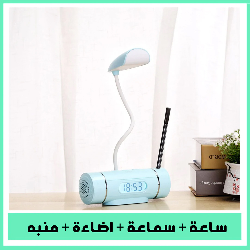 تيبل لامب وساعة منبه وسبيكر موسيقى ومقلمة Table Lamp, Alarm Clock, Bluetooth Headset And Pencil Case