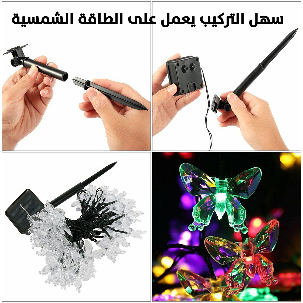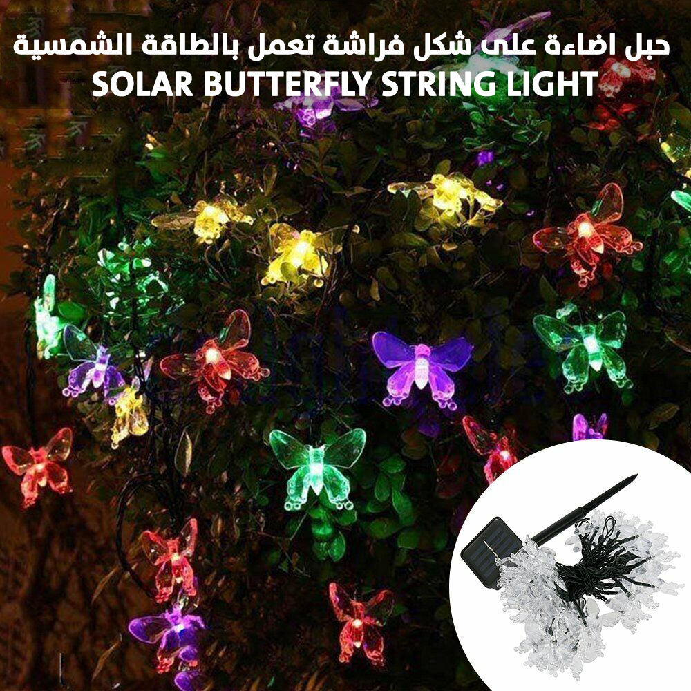 مؤرشف حبل اضاءة على شكل فراشة تعمل بالطاقة الشمسية Solar Butterfly String Light