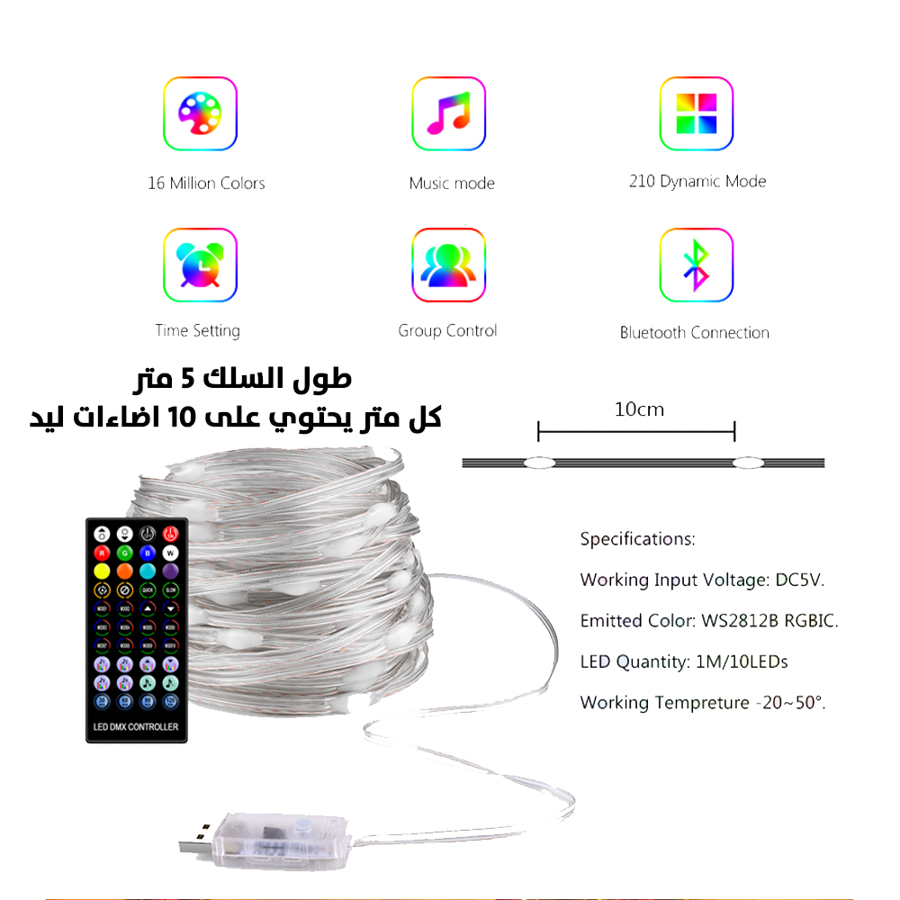 ضوء حبل ليد مع تطبيق وتغير اللون على الصوت 5 متر SMART FAIRY LIGHTS IC-RGB