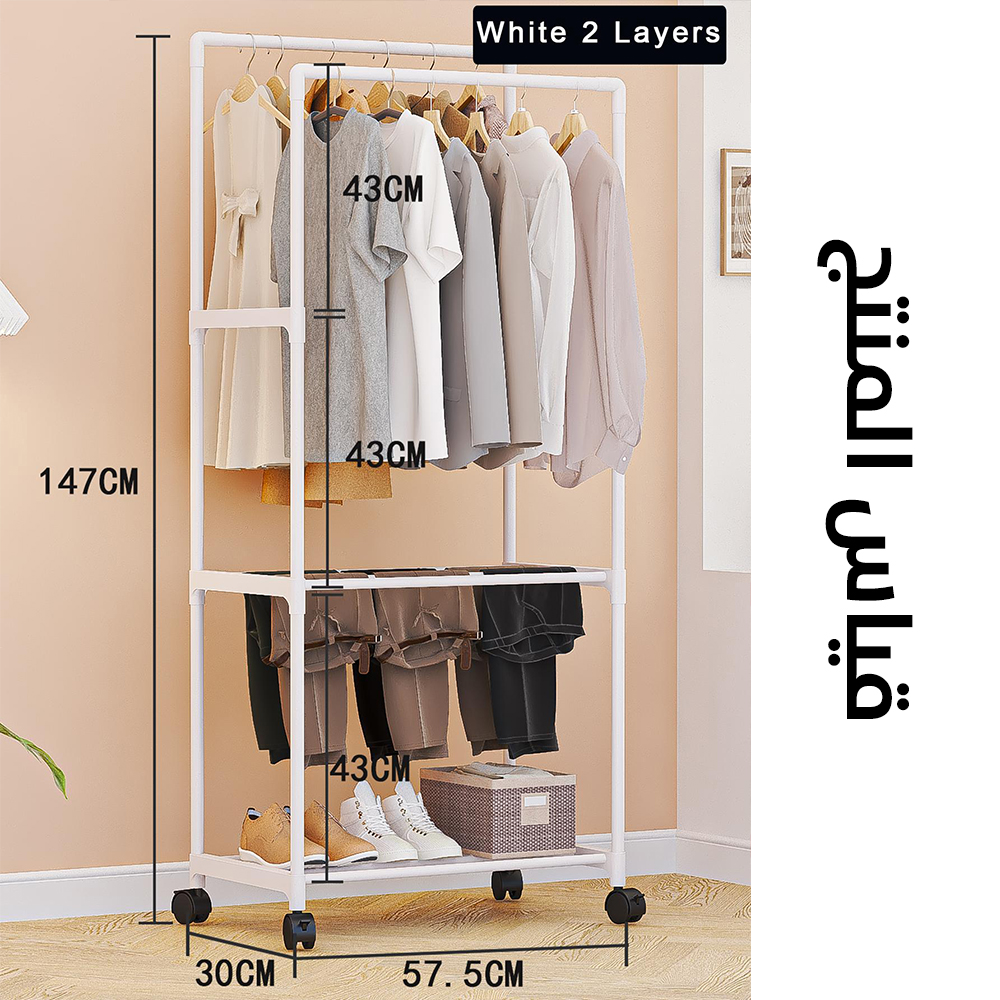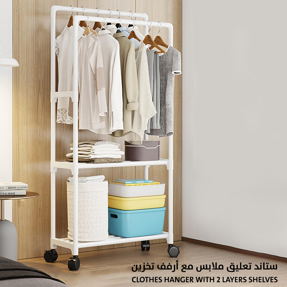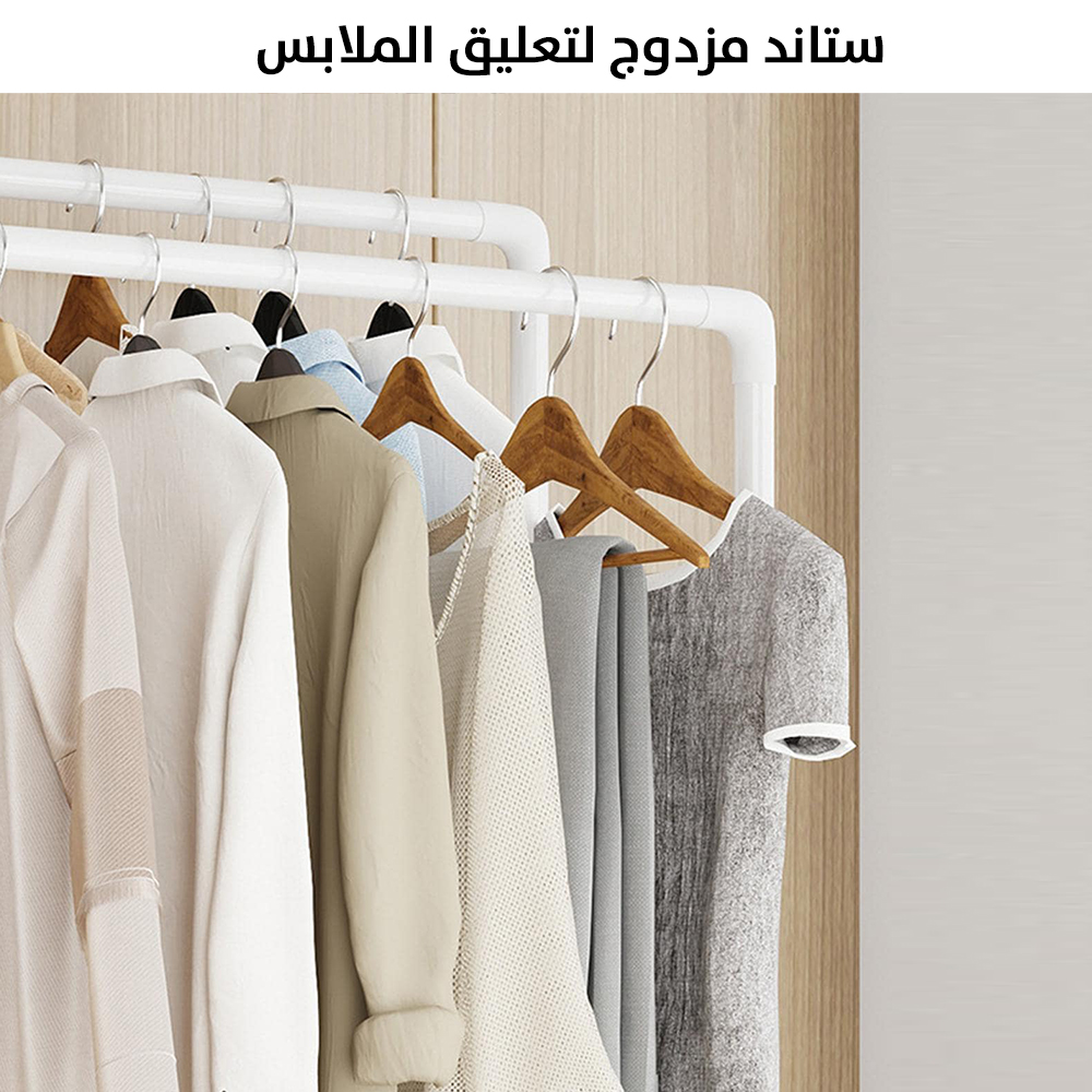 ستاند تعليق ملابس مع أرفف تخزين Clothes Hanger With 2 Layers Shelves