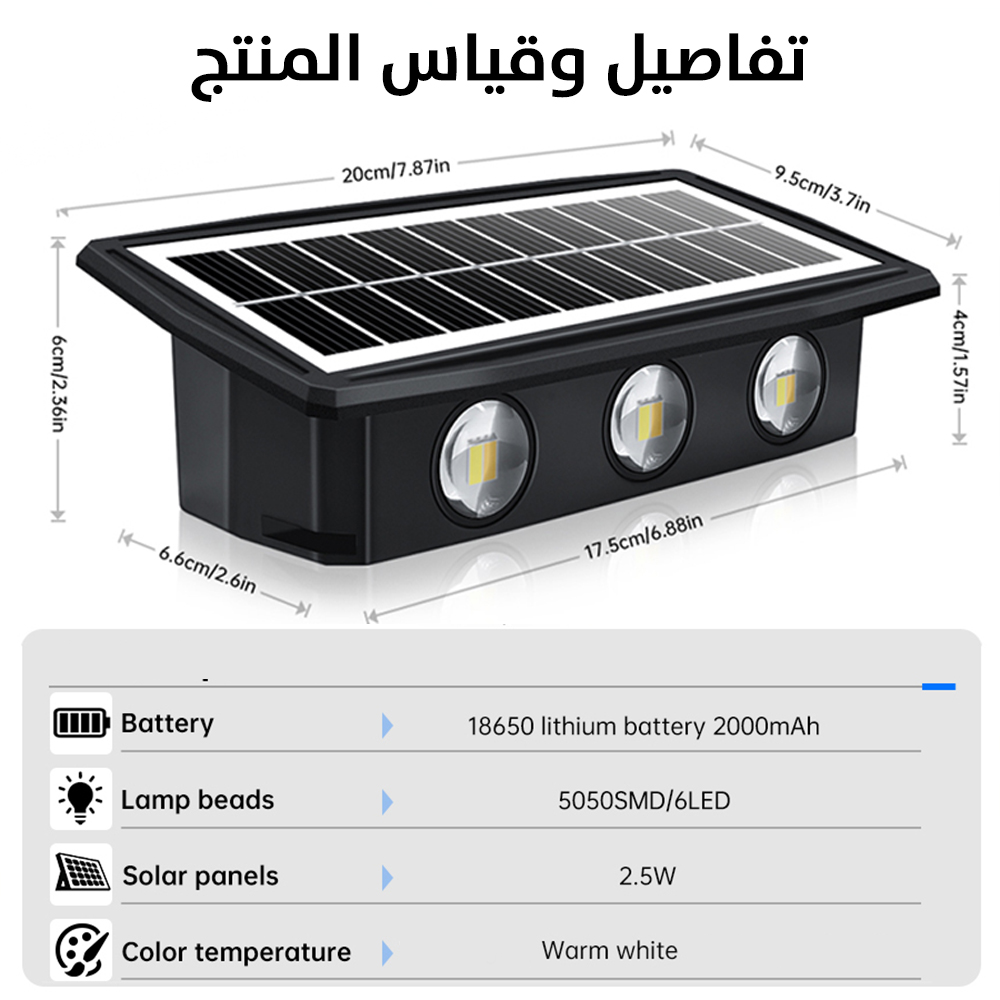كشاف إضاءة جدراية يعمل بالطاقة الشمسية (لون صحراوي) 6LED Warm Light Solar Wall Lamp