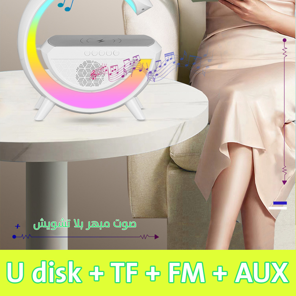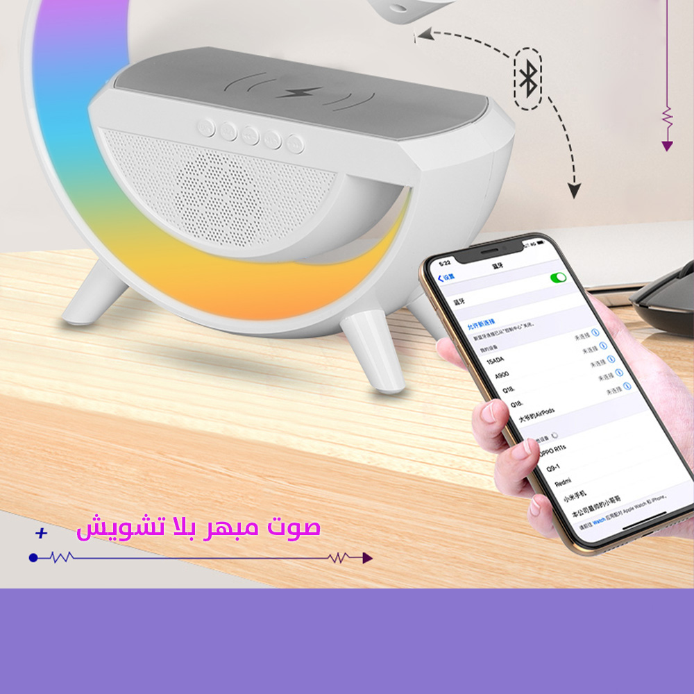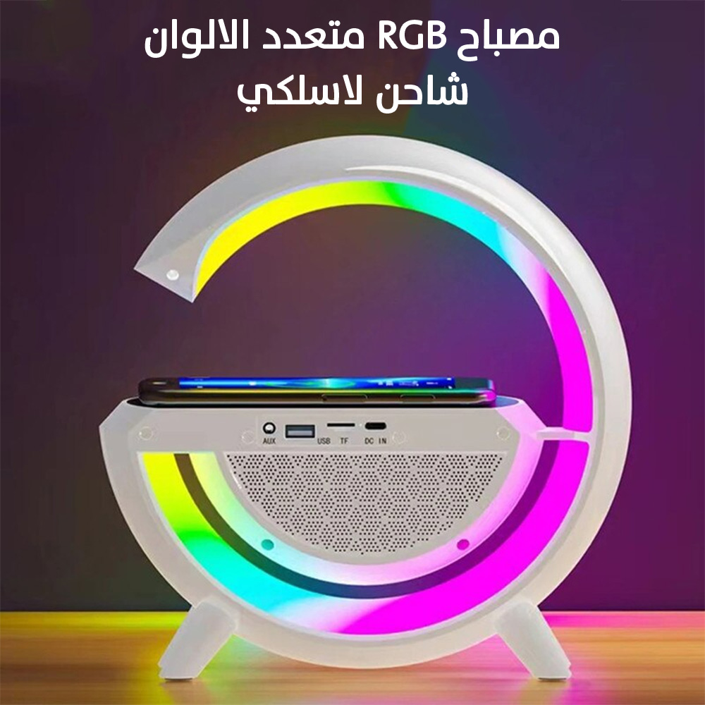 سماعه وشاحن لاسلكي للموبايل مع اضاءة ليد RGB Wireless Charging Desk Lamp