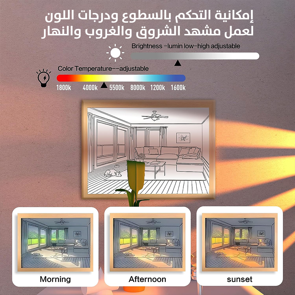 ✅ امكانية التحكم بالاضاءة و السطوع لعمل مشهد شروق او غروب