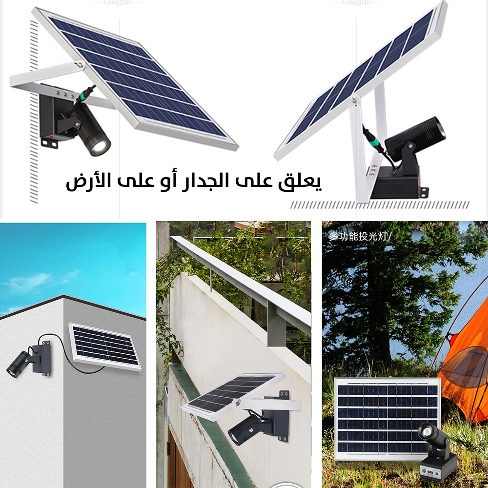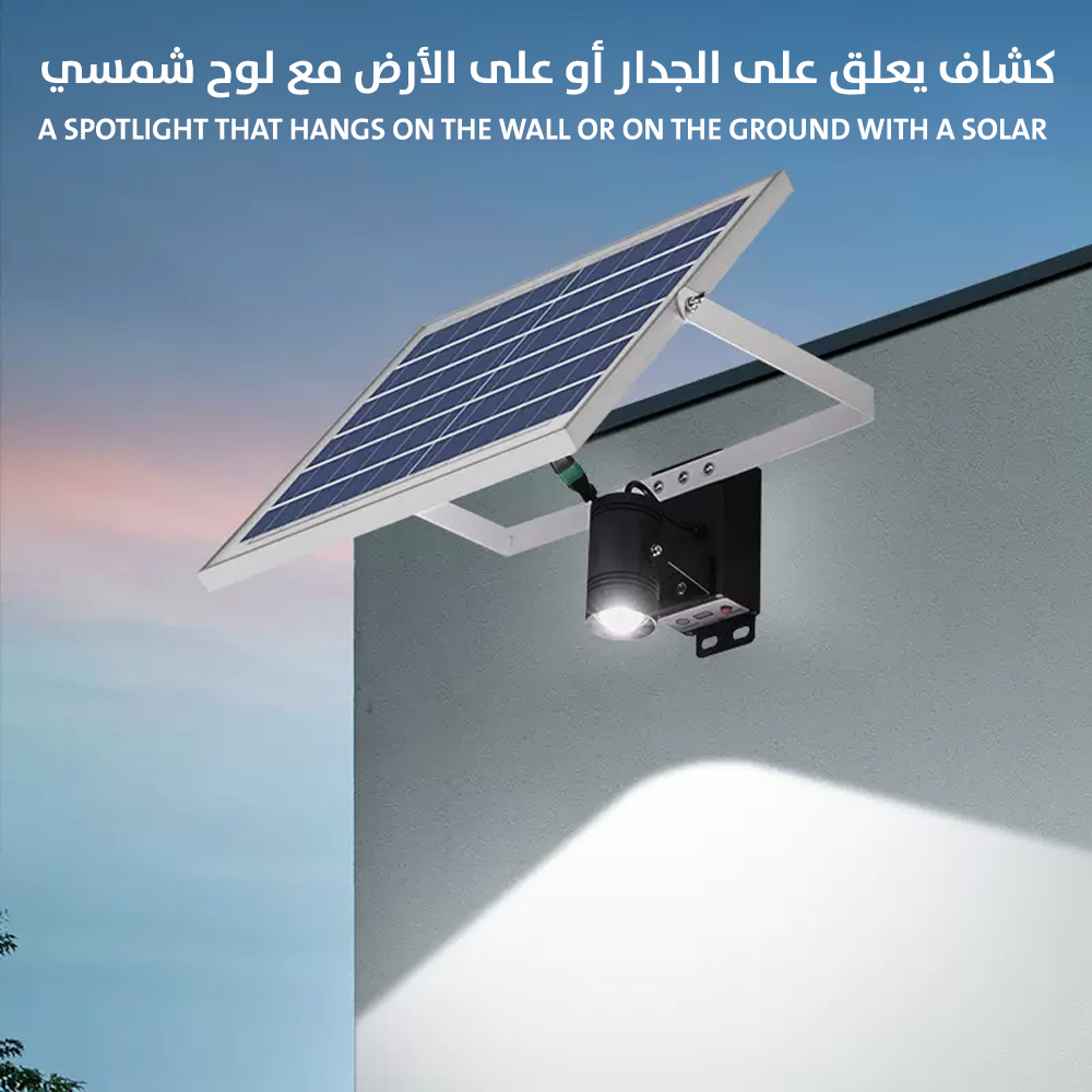 كشاف يعلق على الجدار أو على الأرض مع لوح شمسي A Spotlight That Hangs On The Wall Or On The Ground With A Solar