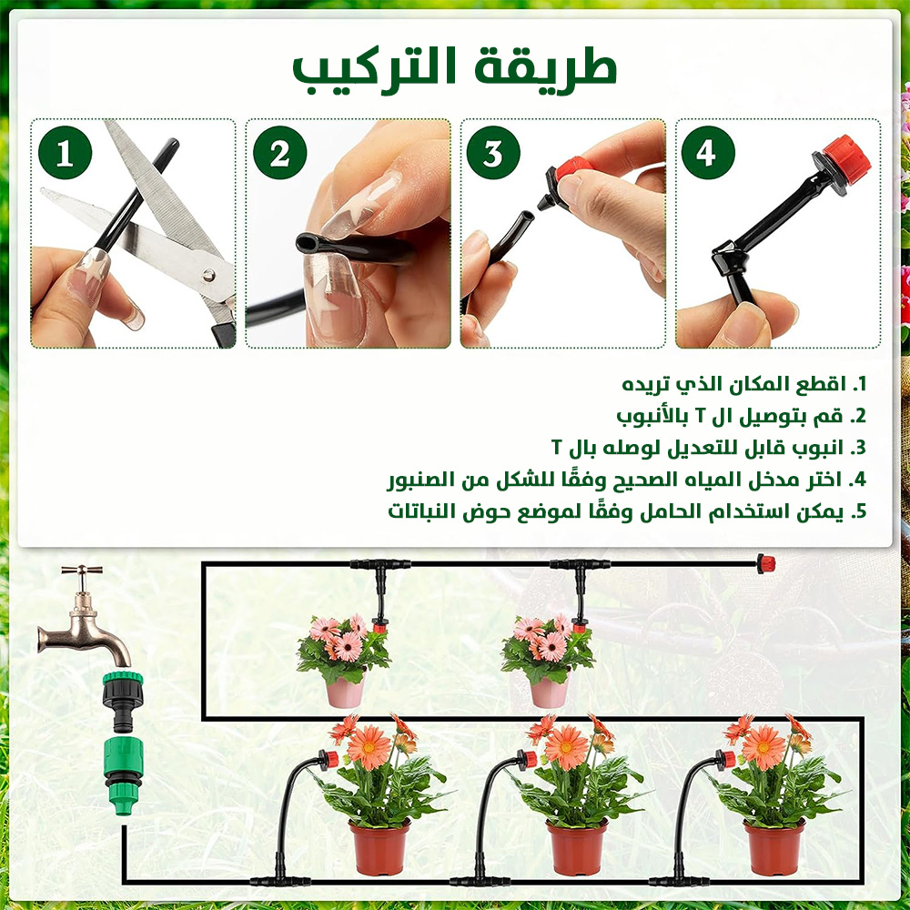 مجموعة متكاملة من قطع سقاية النباتات مزودة ببربيش بطول 20 متر Irrigation System Greenhouse Watering Systems