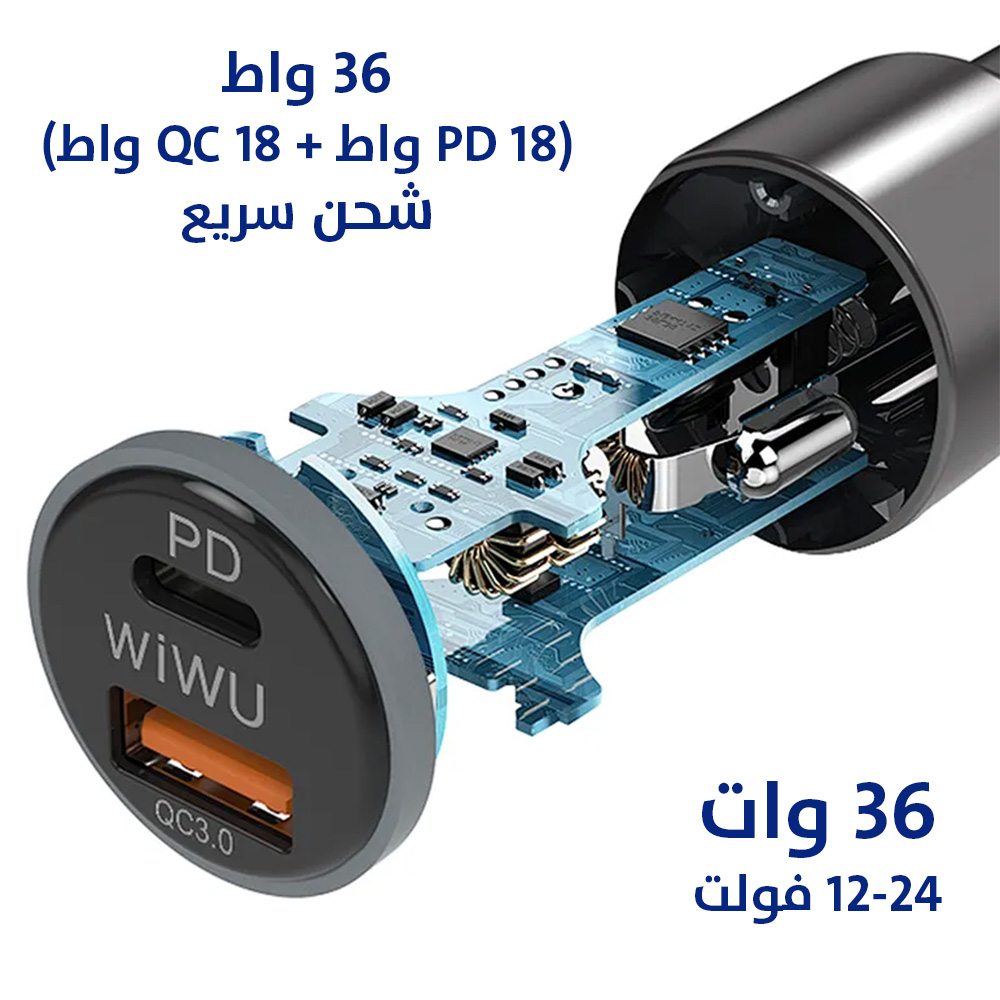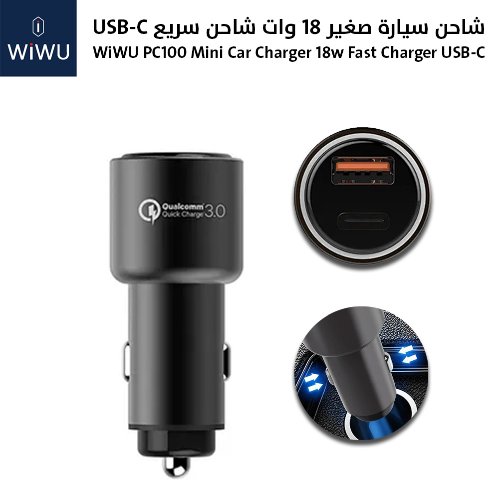 شاحن سيارة صغير 18 وات شاحن سريع USB-C WiWU PC100 Mini Car Charger 18w Fast Charger USB-C