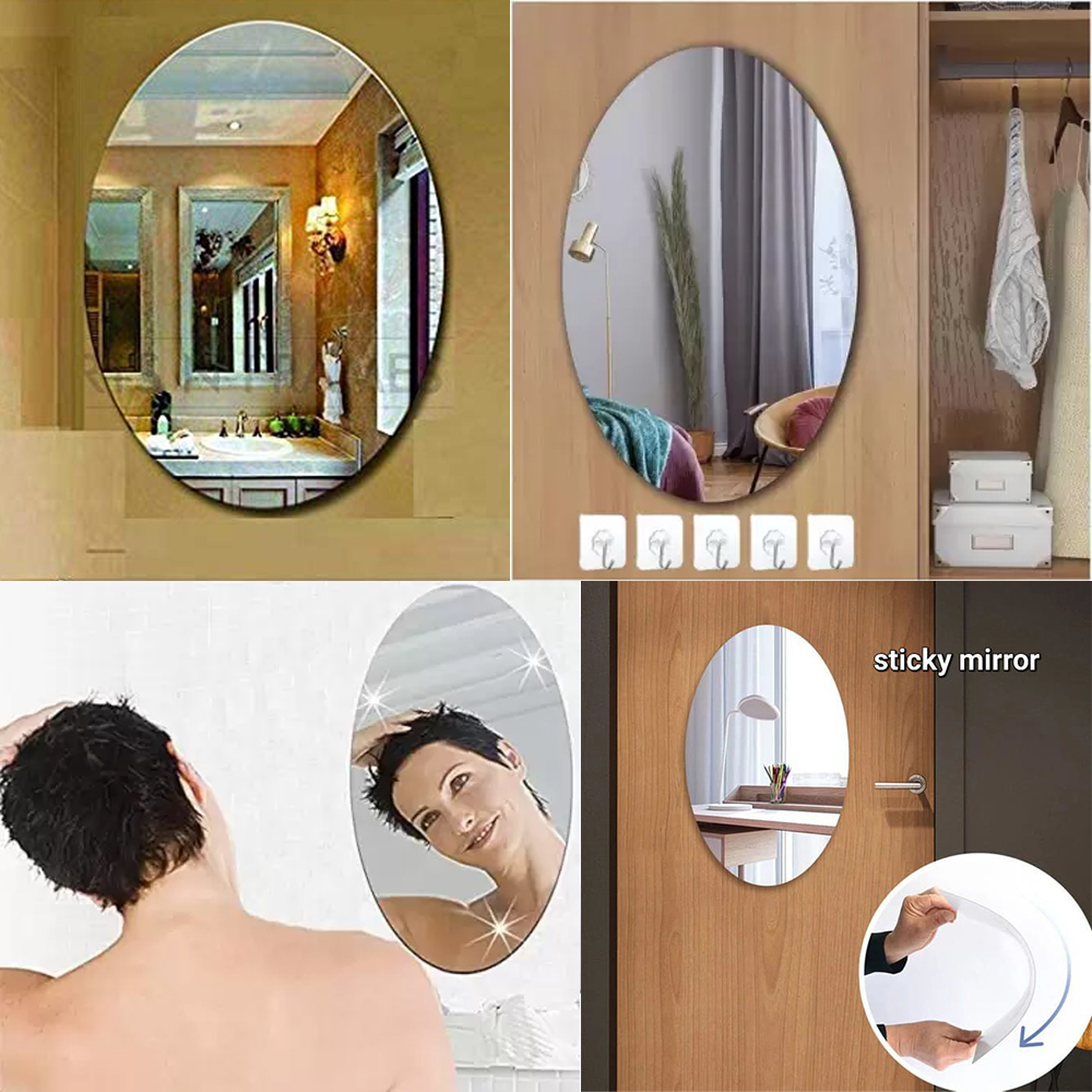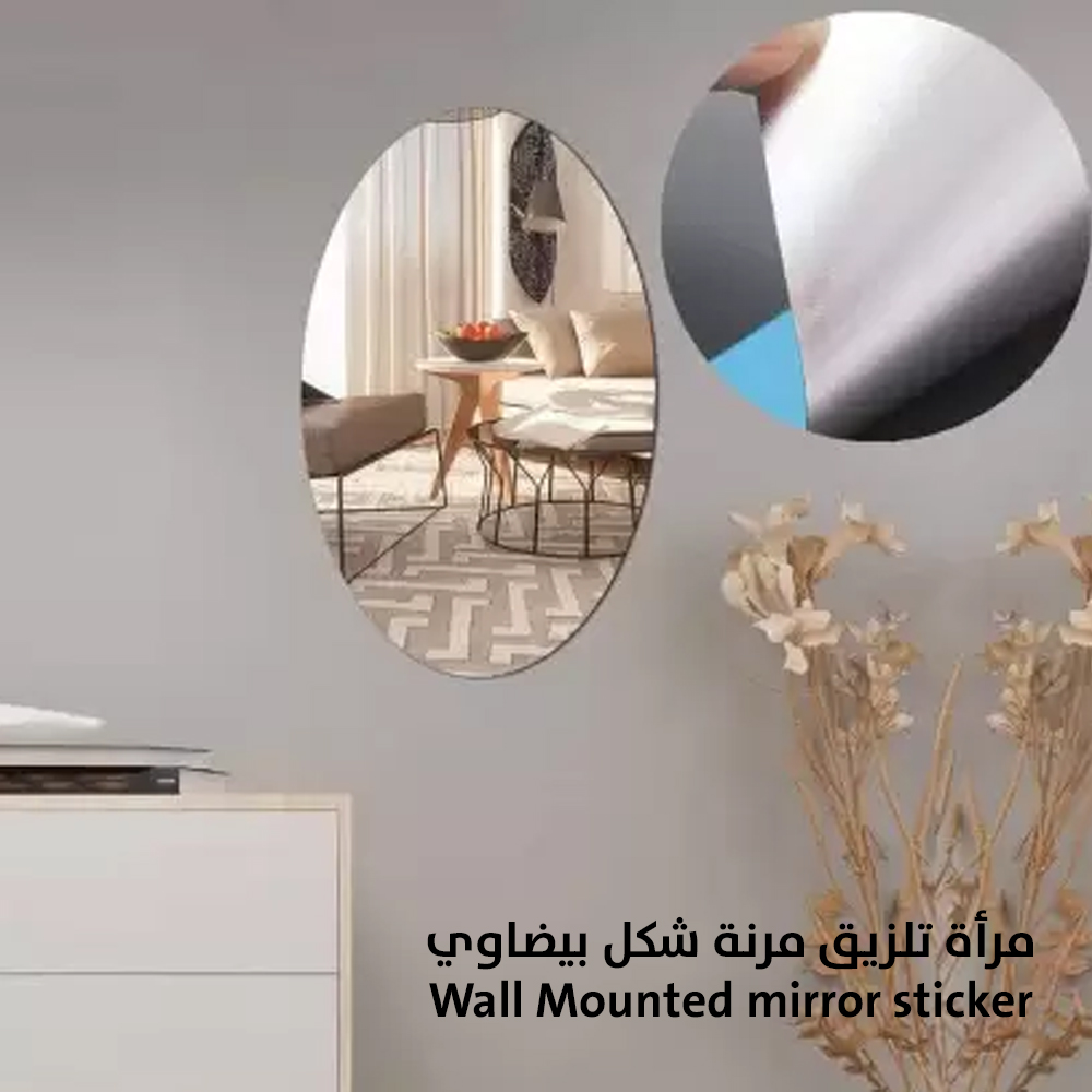 مرآة تلزيق قابلة للطي شكل بيضاوي Wall Mounted Mirror Sticker