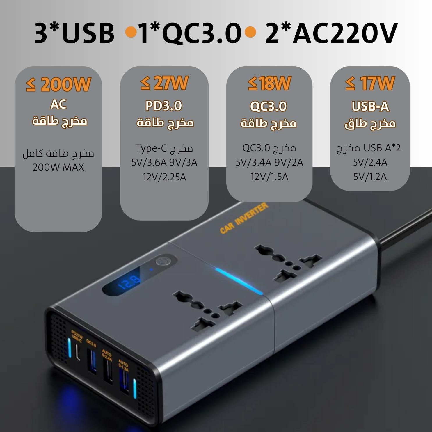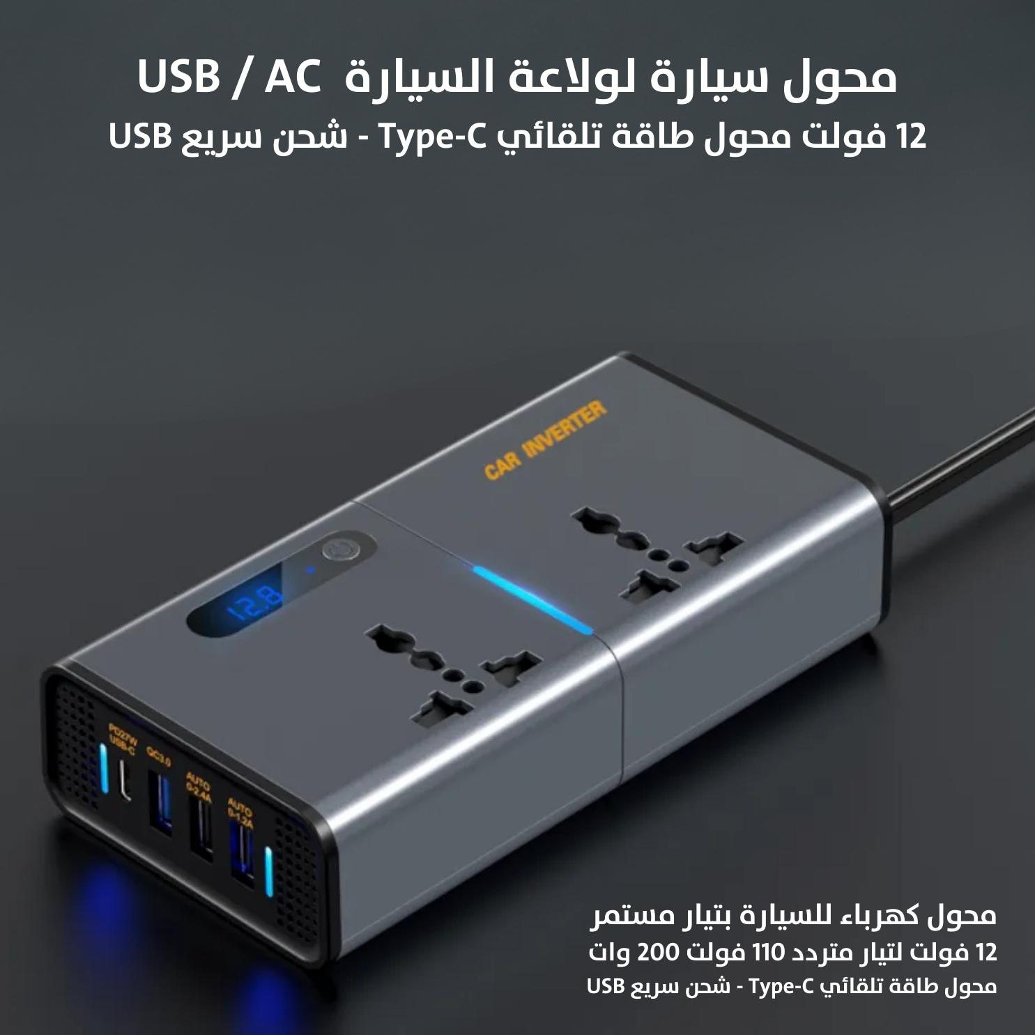 محول سيارة لولاعة السيارة USB / AC 12 فولت محول طاقة تلقائي Type-C - شحن سريع USB