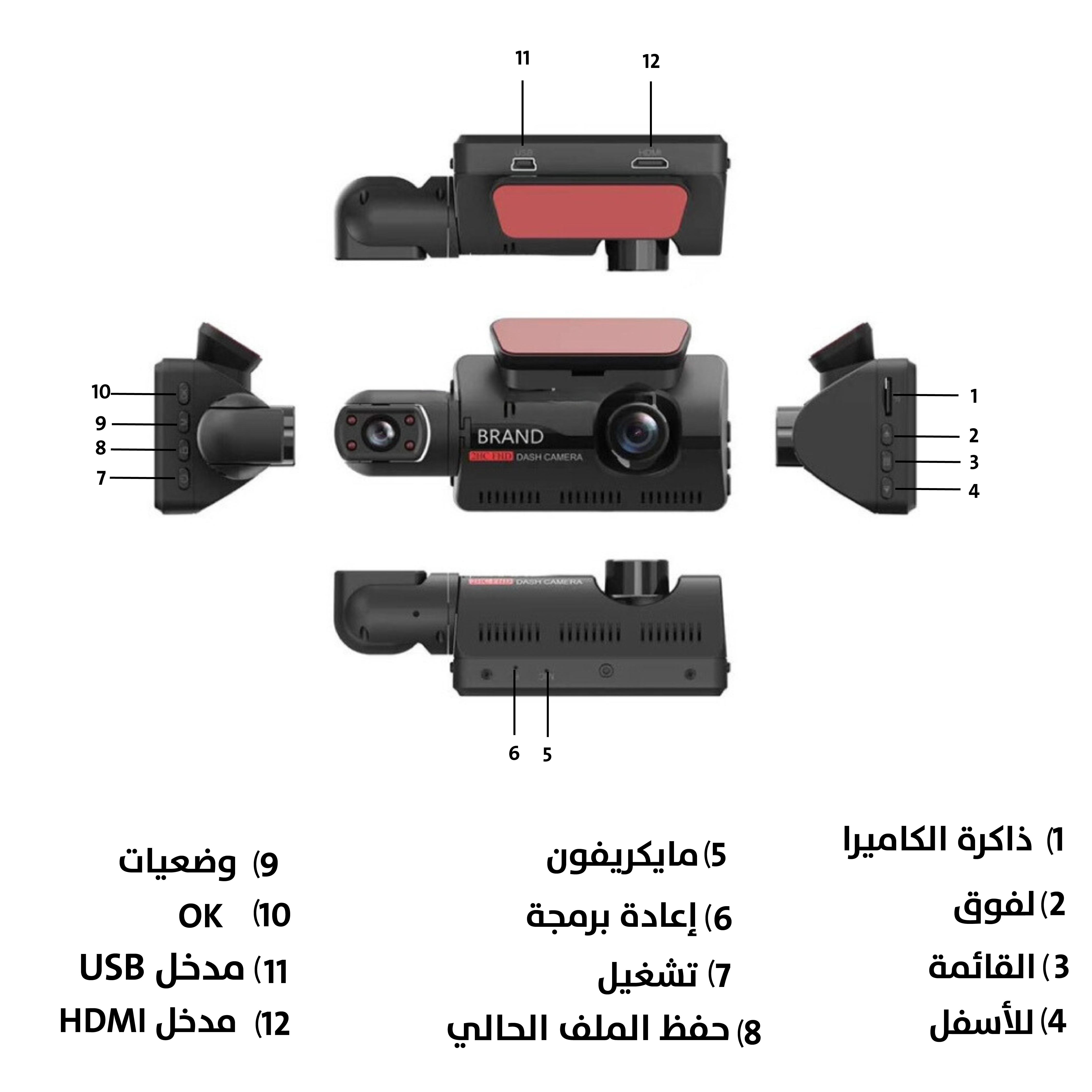 كاميرا سيارة امامية عدسة مزدوجة 1080HD Dual Lens Front Car Camera A68