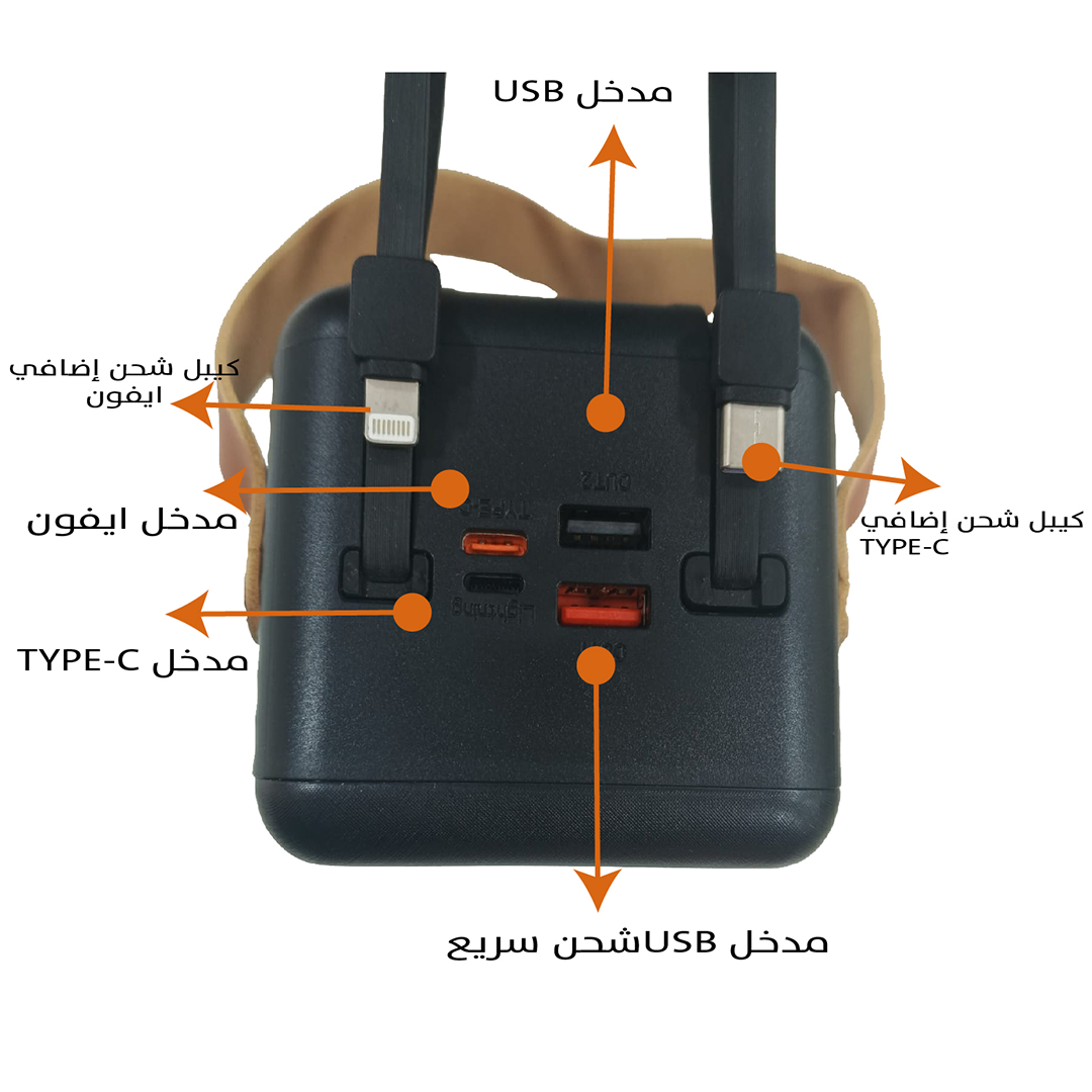 - يدعم 2 كابل شحن سريع متصلين بجسم الشاحن الاحتياطي، وهو مناسب عندما تنسى إحضار كابل شحن خارجي.