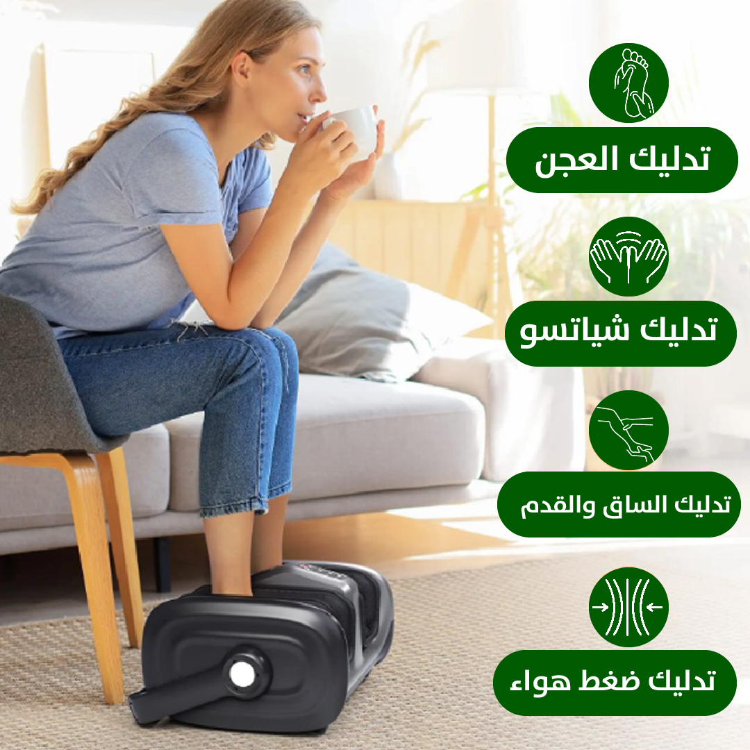 جهاز تدليك القدمين لتخفيف الآلام والتوتر في القدمين؛ فعال لضعف الدورة الدموية، ومرضى السكر، والتهاب المفاصل، والتهاب اللفافة الأخمصية، وكبار السن، والكاحل، والكعب، وعضلات الساق والربلة