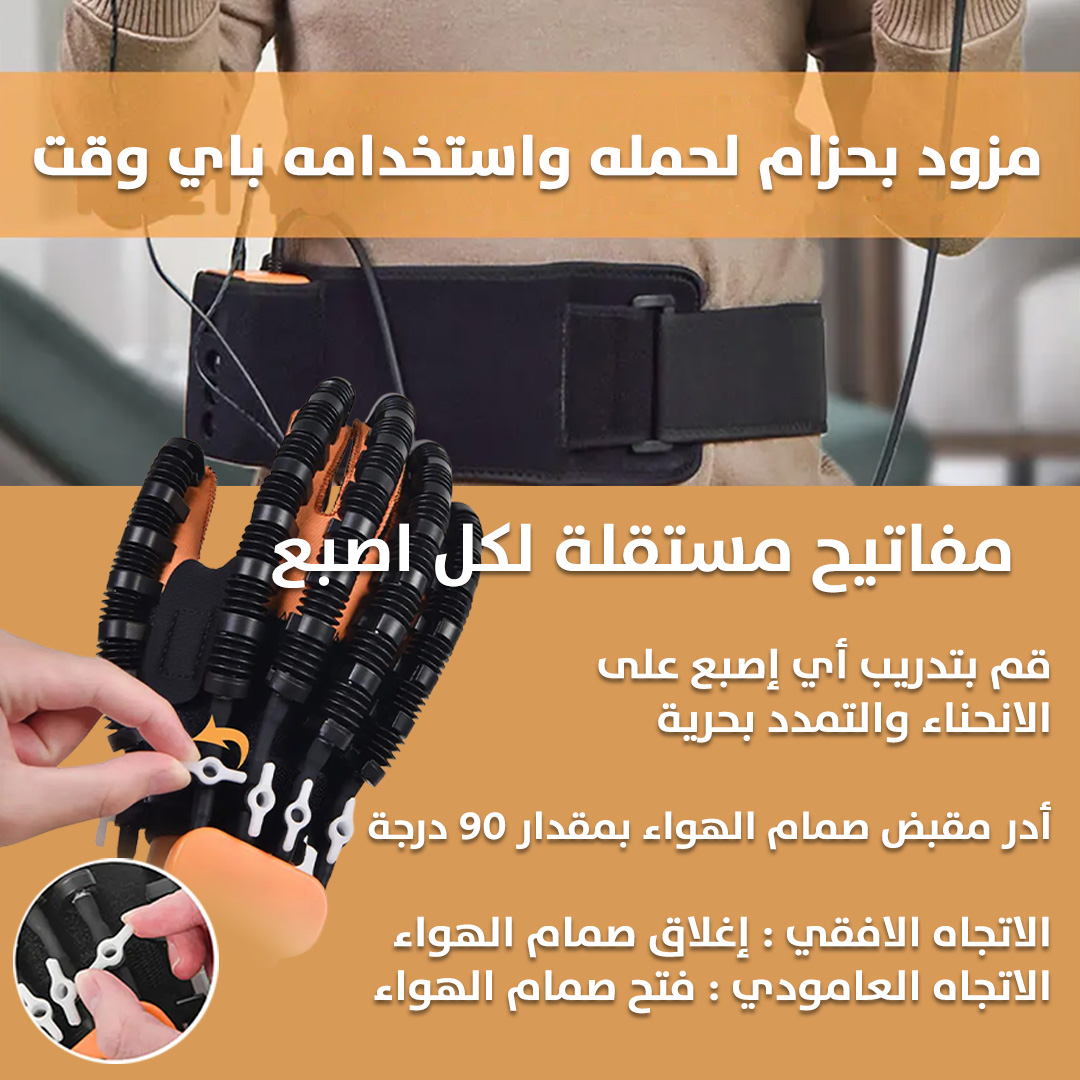 استخدام هذا القفاز في برامج التأهيل يمكن أن يساعد في تحسين القدرة على الحركة والسيطرة على اليد، مما يسهم في عملية الشفاء بشكل أفضل????????