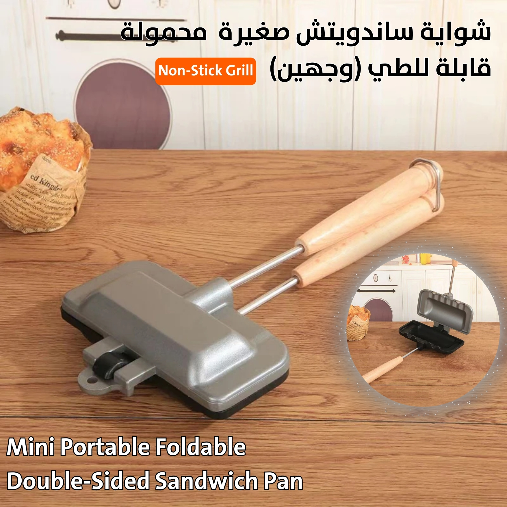 شواية ساندويتش صغيرة محمولة للغاز (وجهين) Mini Double-Sided Sandwich Grill