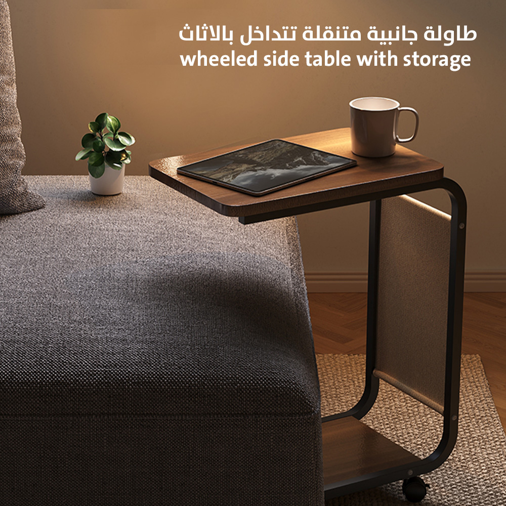 طاولة جانبية متنقلة تتداخل بالاثاث Wheeled Side Table With Storage