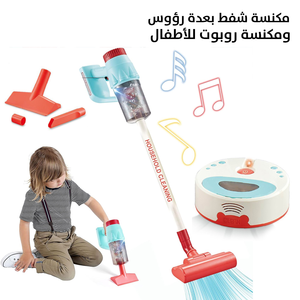 مكنسة شفط بعدة رؤوس ومكنسة روبوت للأطفال Vacuum Cleaner Toy