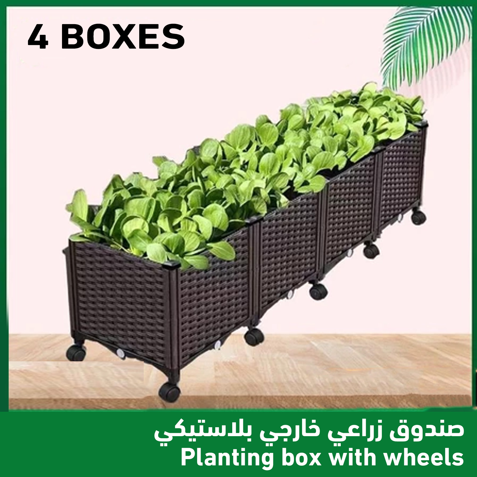قوار زريعة اربع احواض صندوق زراعي خارجي بلاستيكي Planting Box With Wheels 4 BOXES