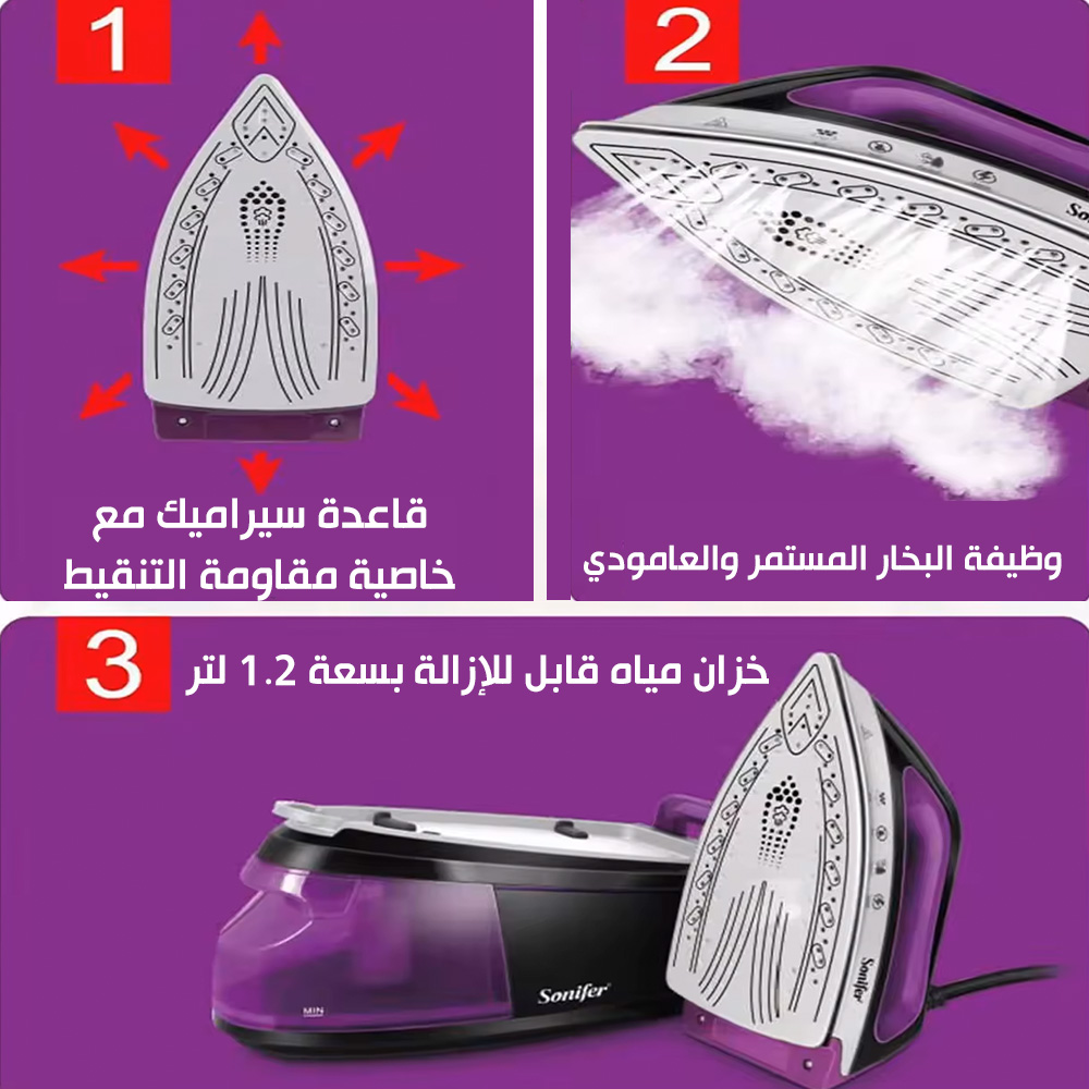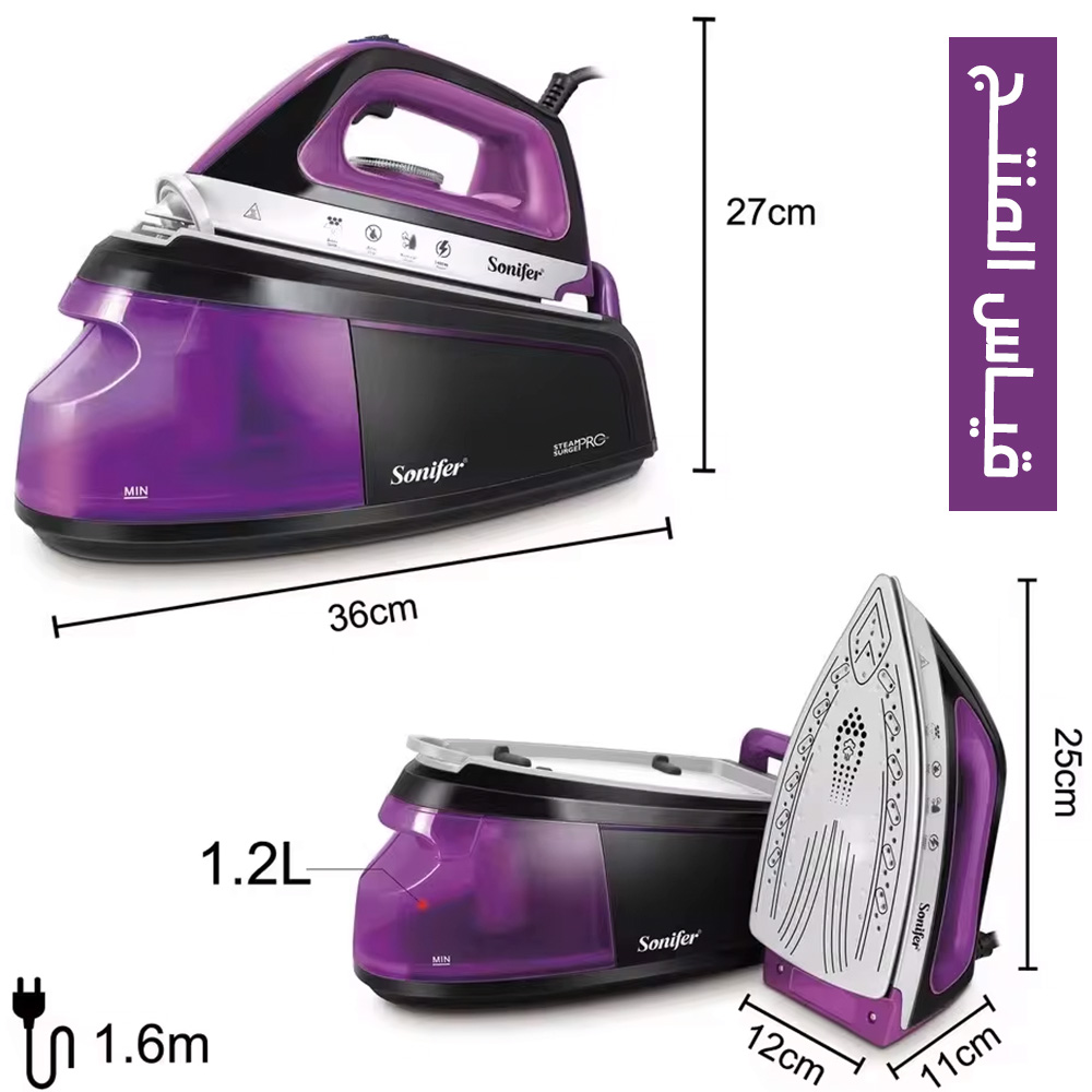 مكواة بخار كهربائية سعة 1.2 لتر مع قاعدة Sonifer Electric Steam Iron Station With Base SF-9053