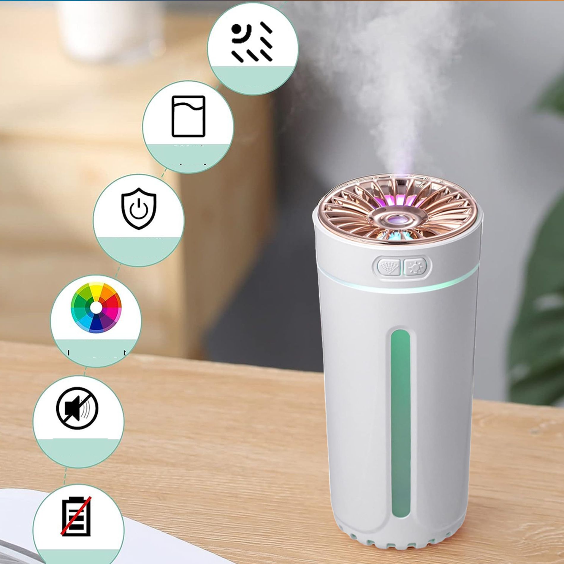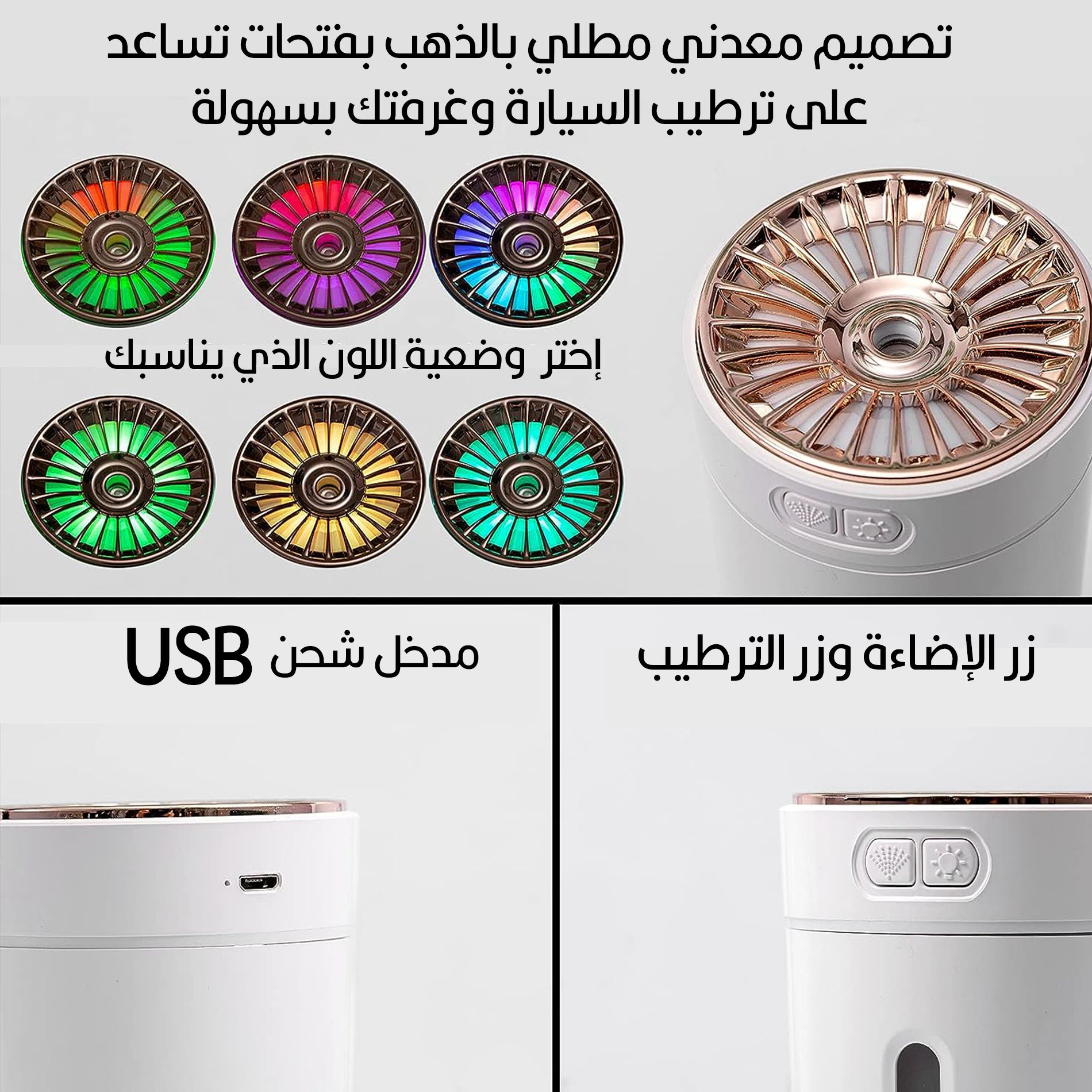 مرطب هواء للسيارة و المنزل بإضاءة ليد ملونة تعمل بالشحن USB AROMA HUMIDIFIER