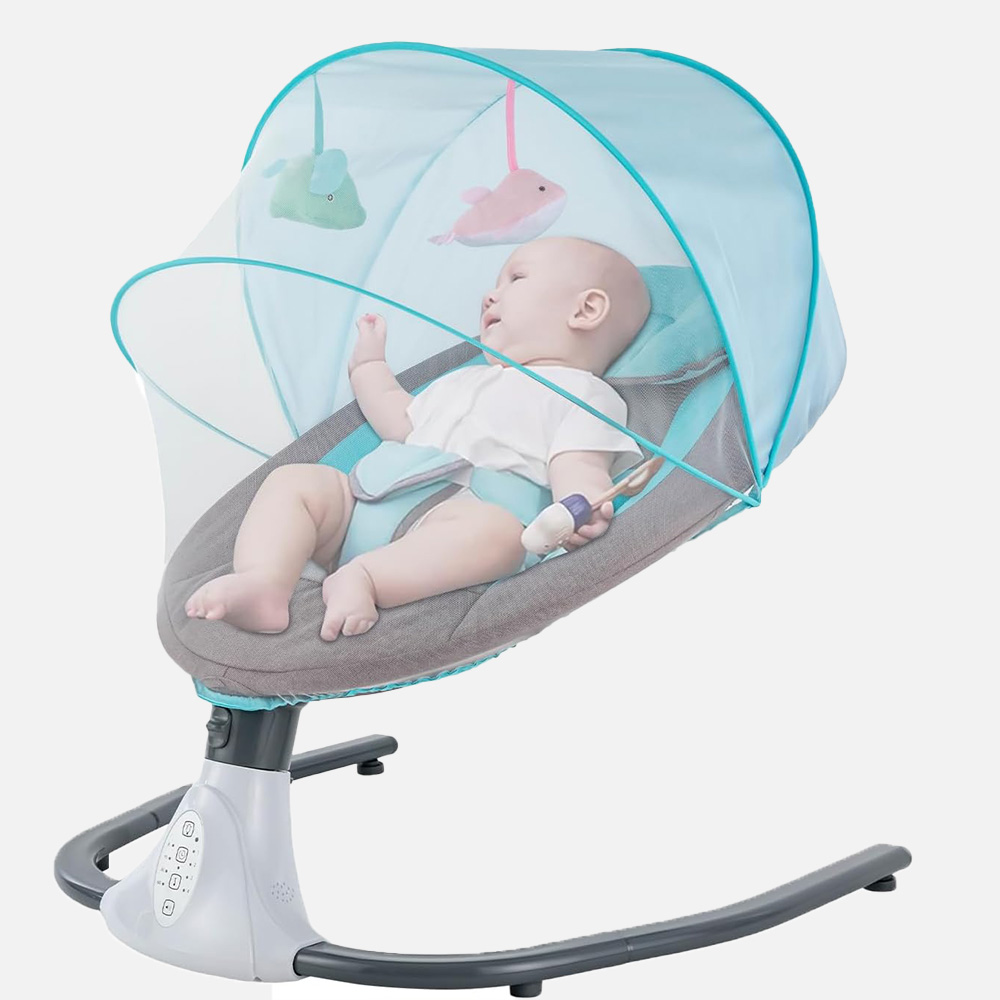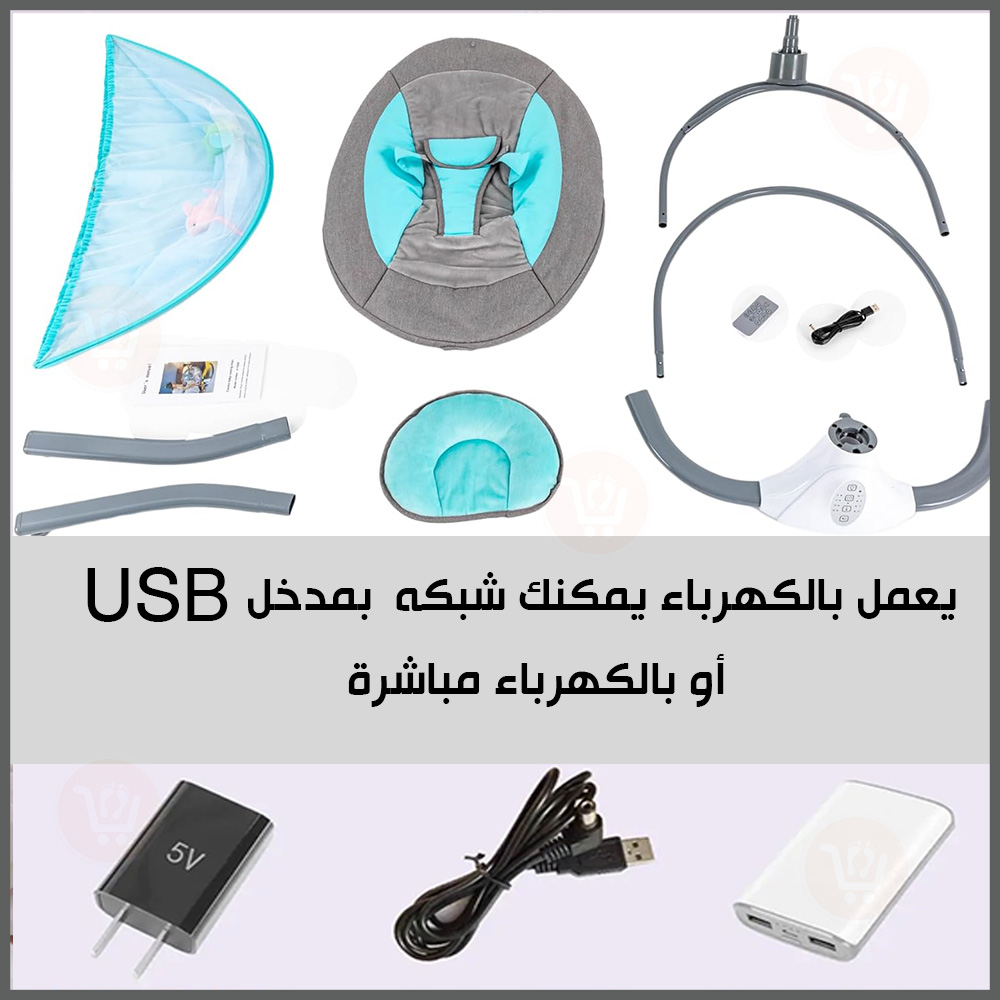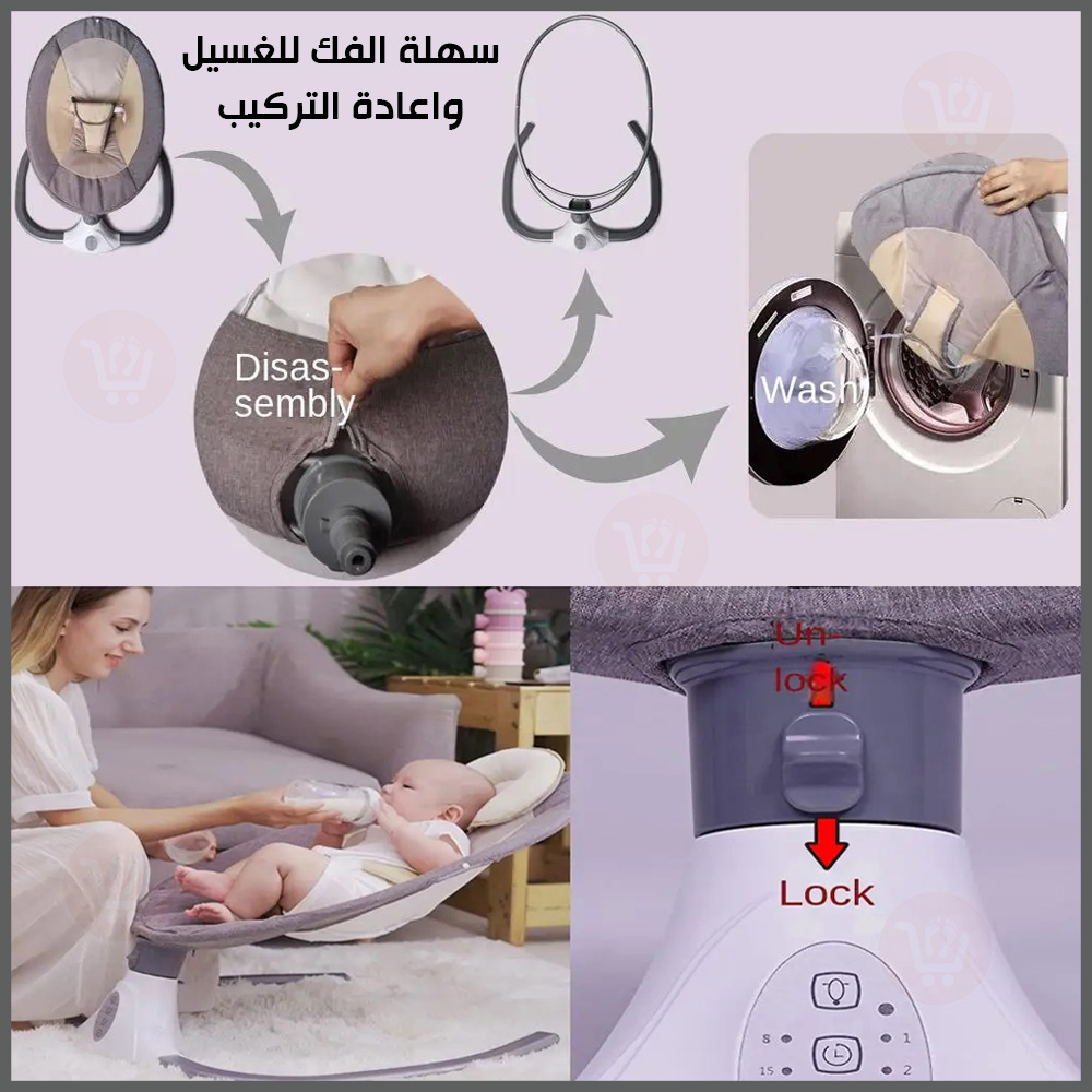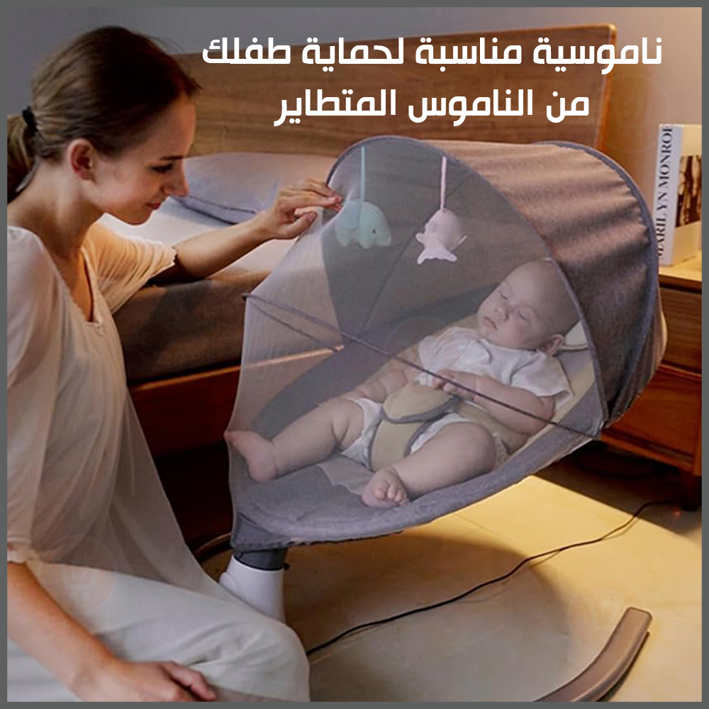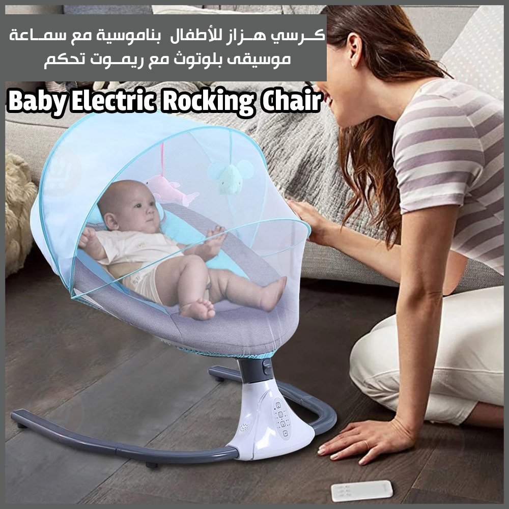 كرسي هزاز للأطفال بناموسية مع سماعة موسيقى بلوتوث مع ريموت تحكم Baby Electric Rocking Chair