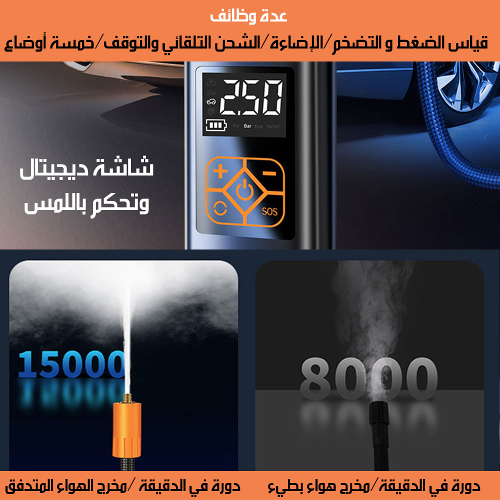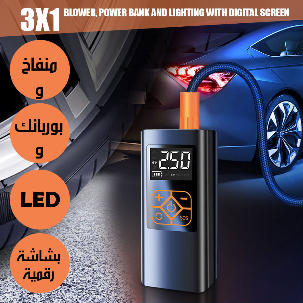 منفاخ هواء و بوربانك واضاءة بشاشة رقمية 3X1 BLOWER, POWER BANK AND LIGHTING WITH DIGITAL SCREEN
