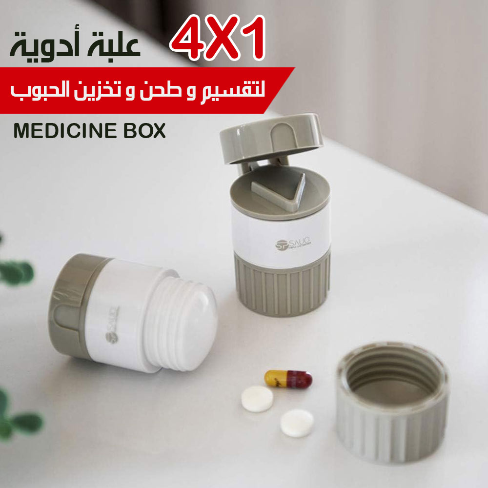 4x1 علبة أدوية لتقسيم و طحن و تخزين الحبوب Medicine Box