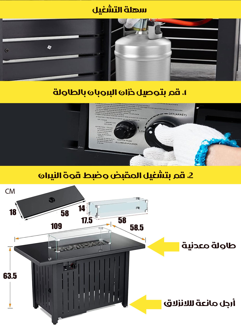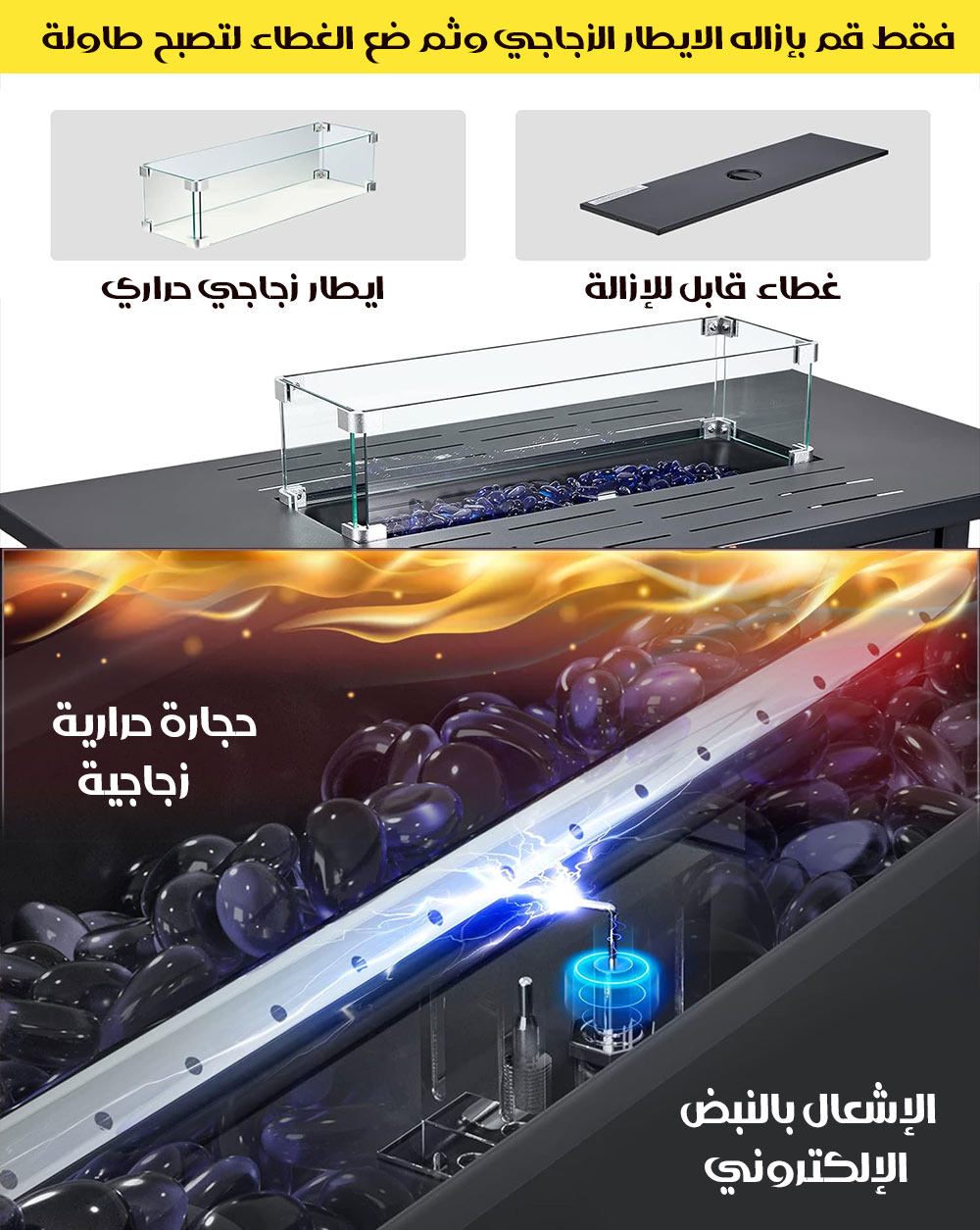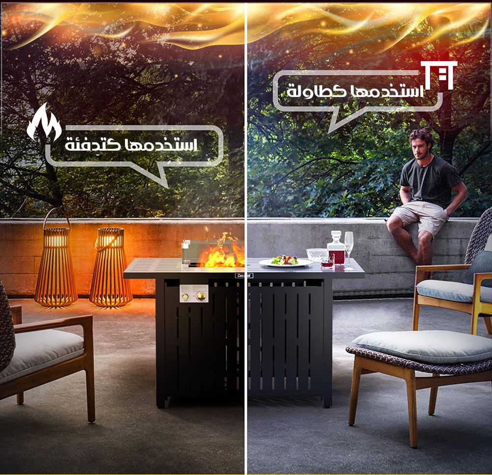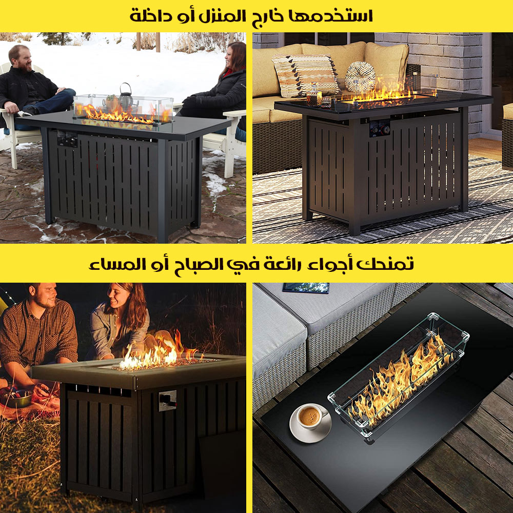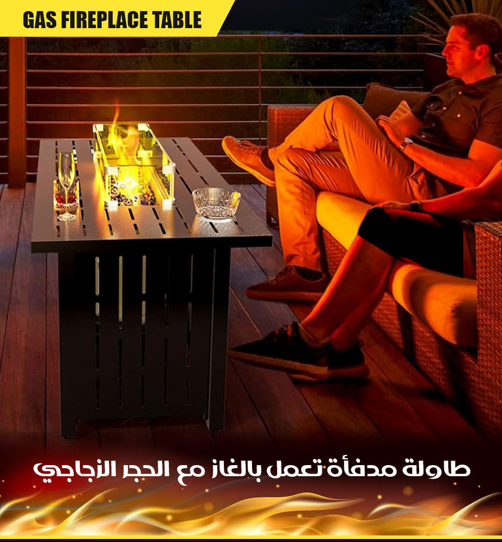 طاولة مدفأة تعمل بالغاز مع الحجر الزجاجي Gas Fireplace Table