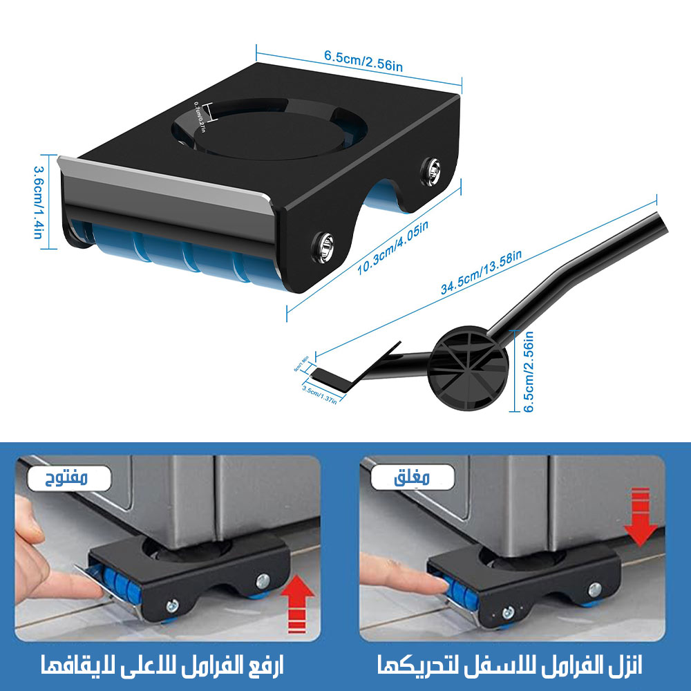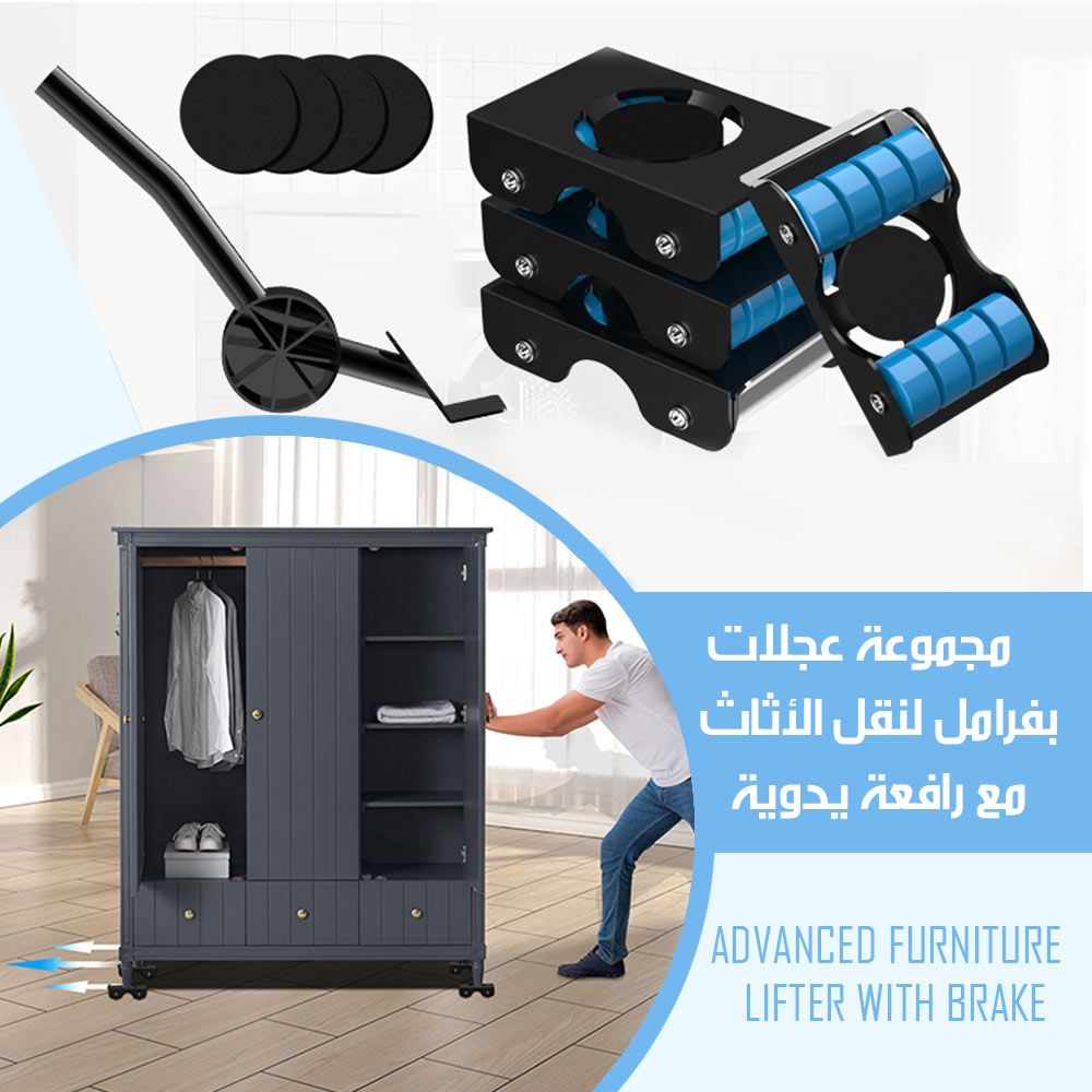 مجموعة عجلات بفرامل لنقل الأثاث مع رافعة يدوية ADVANCED FURNITURE LIFTER WITH BRAKE