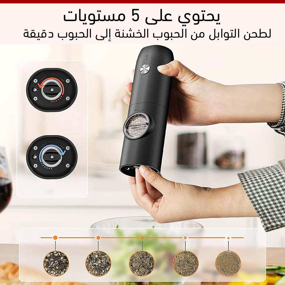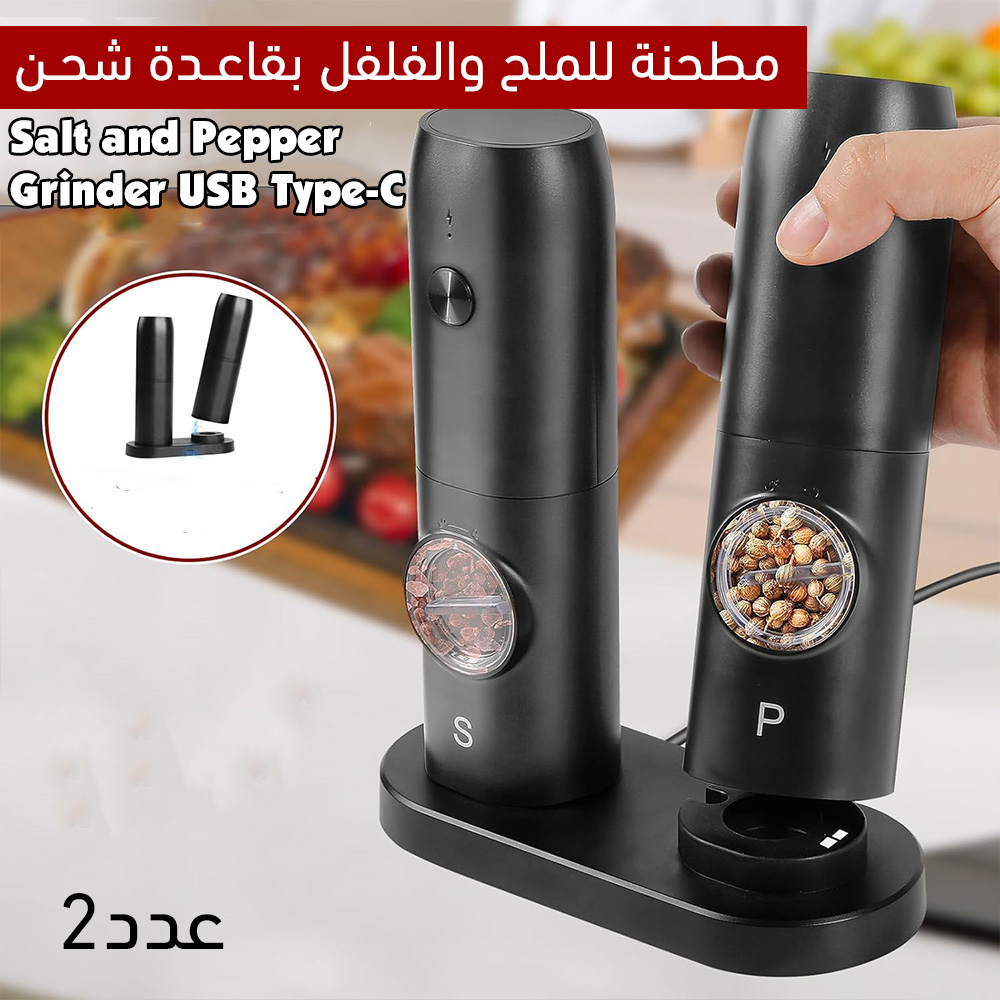 مطحنة للملح والفلفل عدد 2 بقاعدة الشحن Salt And Pepper Grinder USB Type-C
