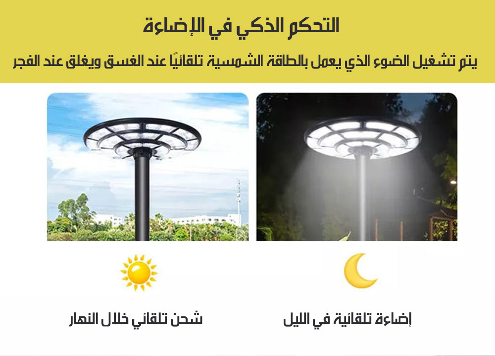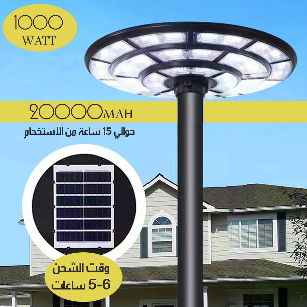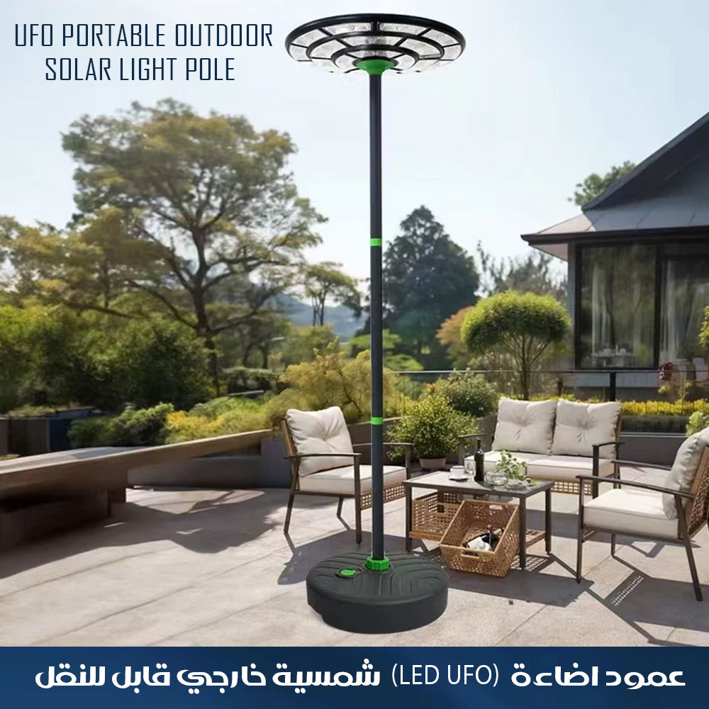 عمود اضاءة (LED) (UFO) شمسية خارجي قابل للنقل UFO PORTABLE OUTDOOR SOLAR LIGHT POLE