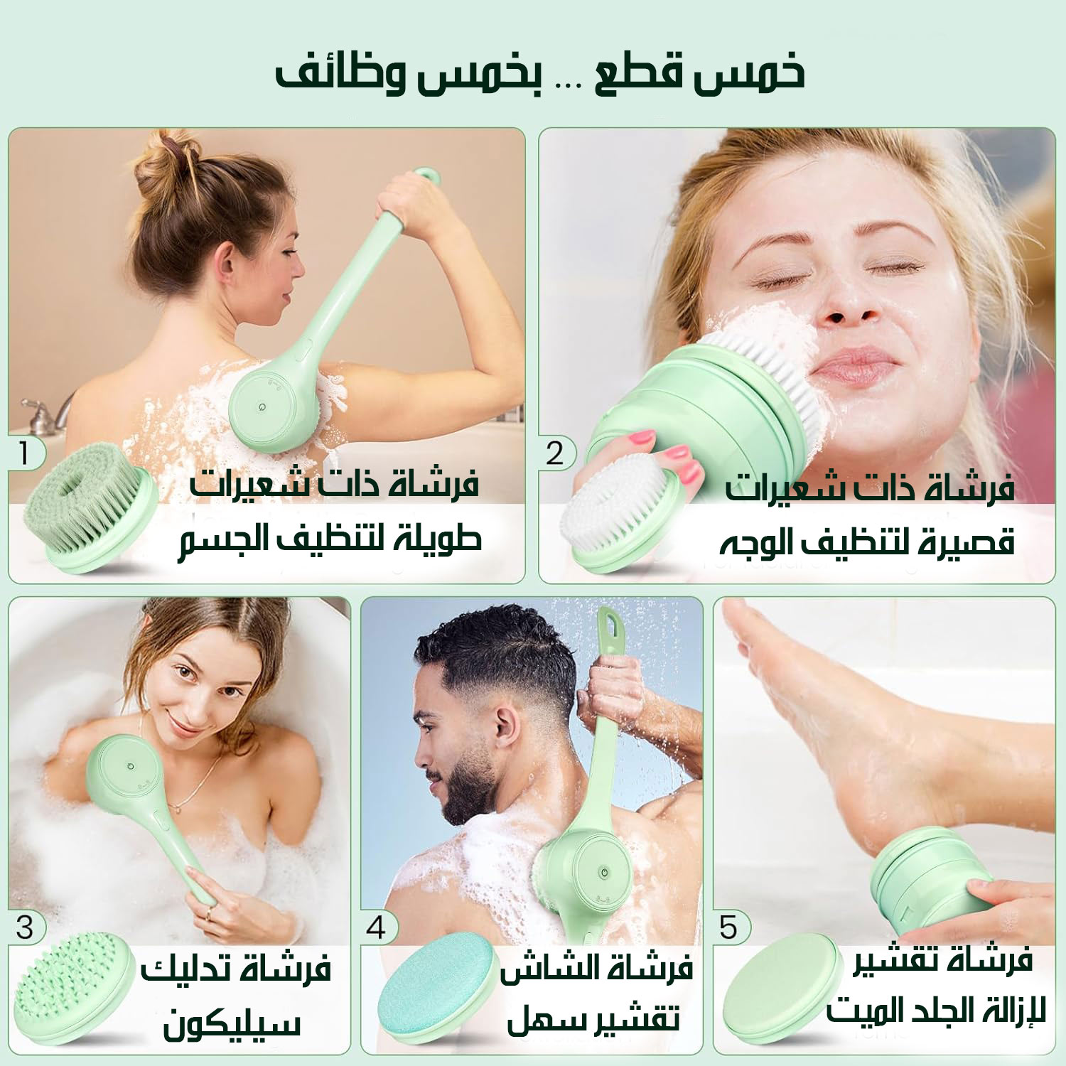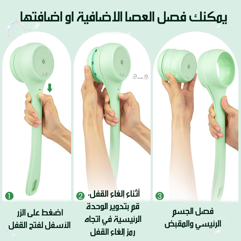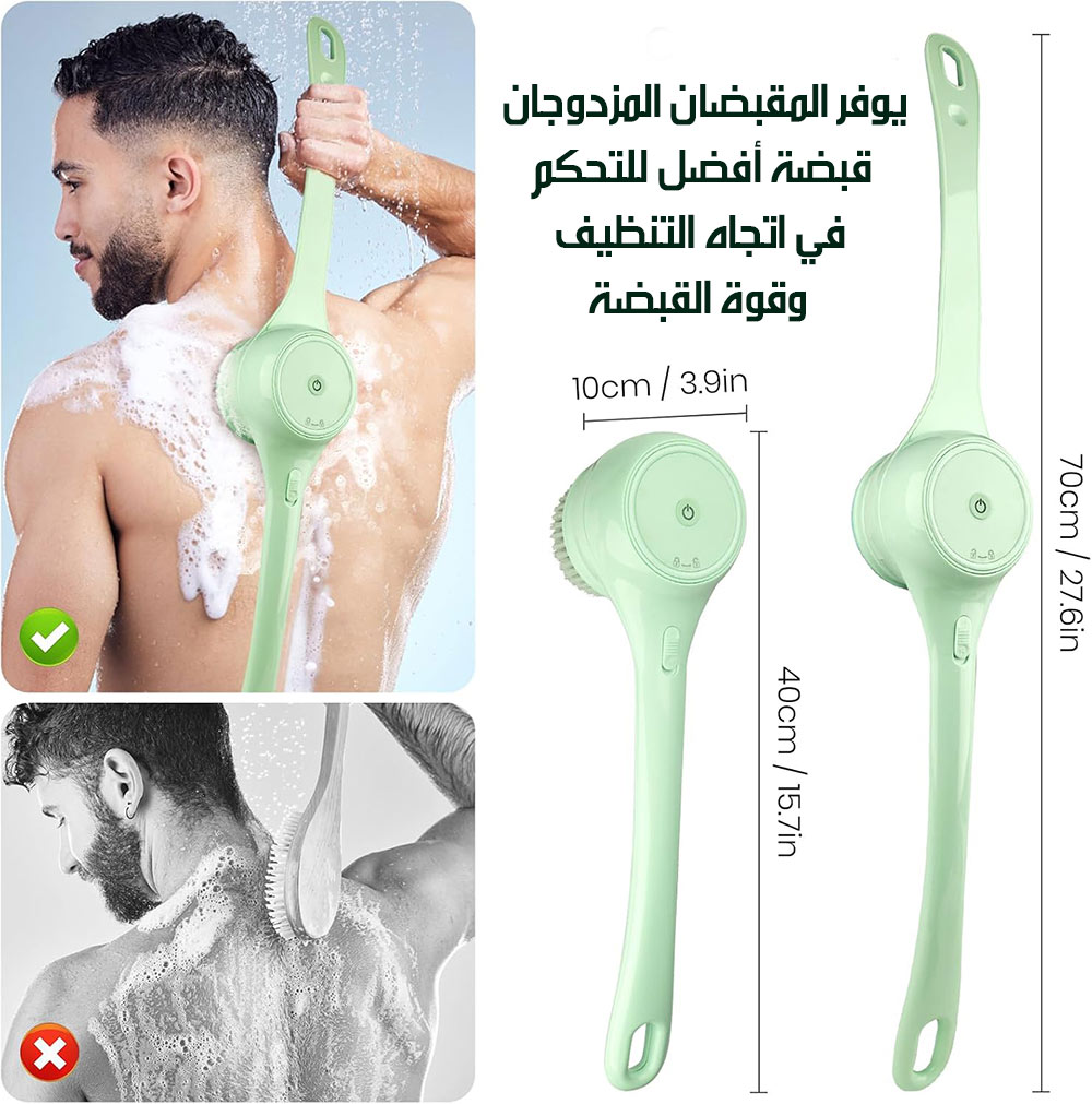 فرشاة دوارة أوتوماتيكية للاستحمام بمقبضين متحركين شحن AUTOMATIC SHOWER BRUSH