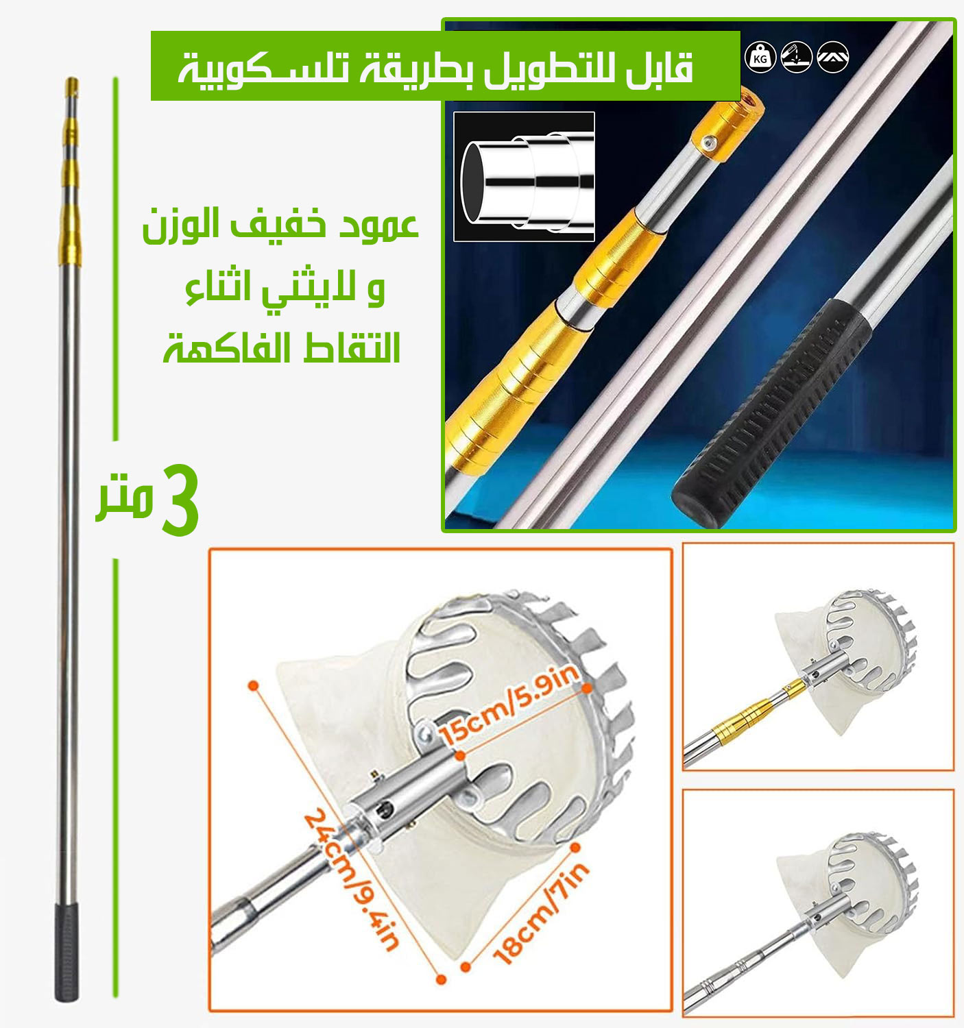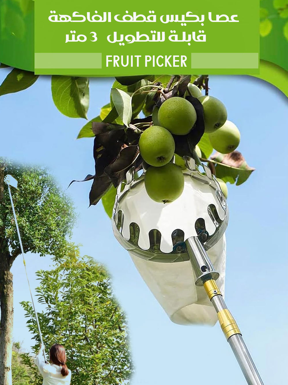 عصا بكيس قطف الفاكهة قابلة للتطويل 3 متر Fruit Picker - 6071