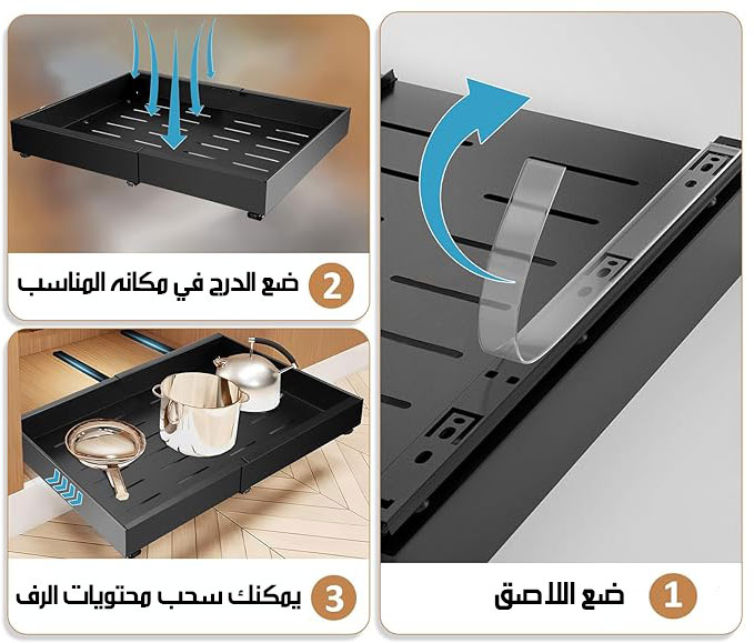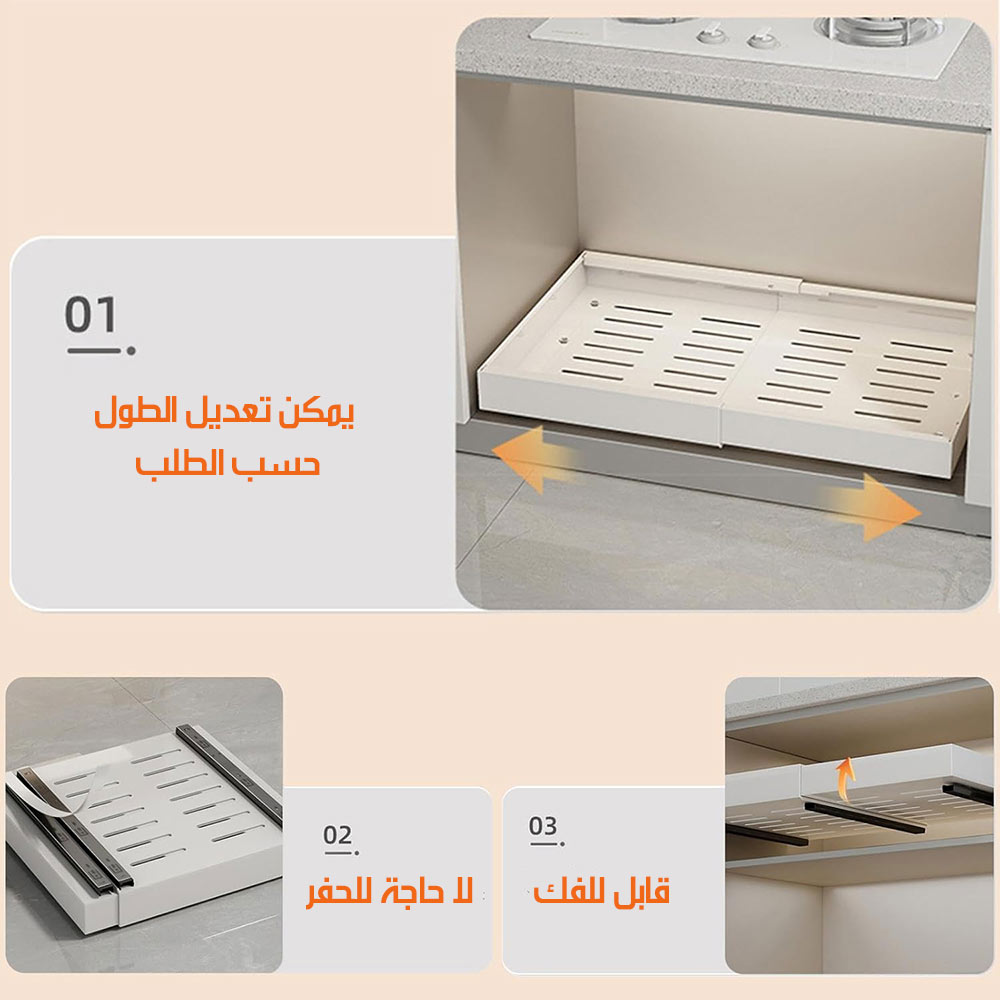 درج قابل للتكبير ومنزلق على سكة معدنية Pull-Out Kitchen Drawer - 6072