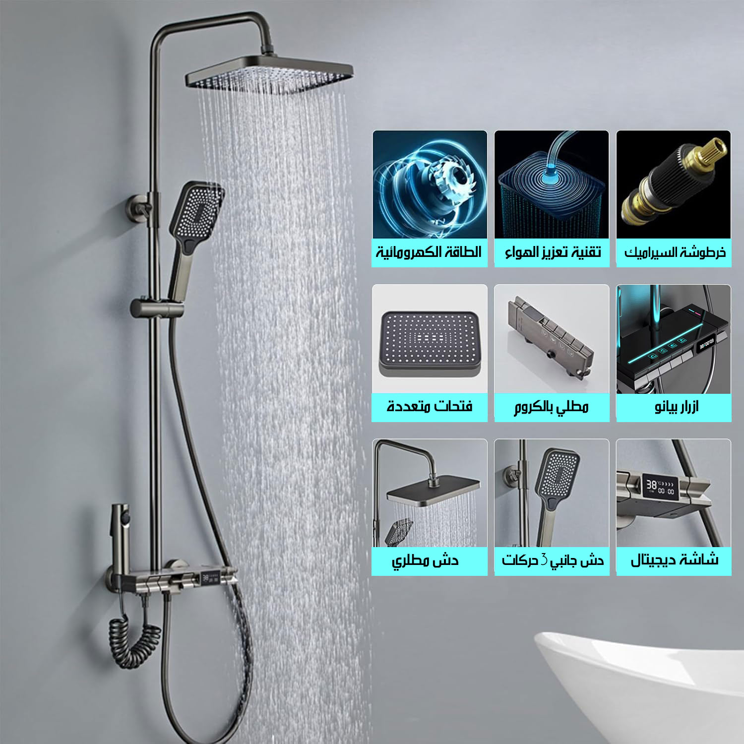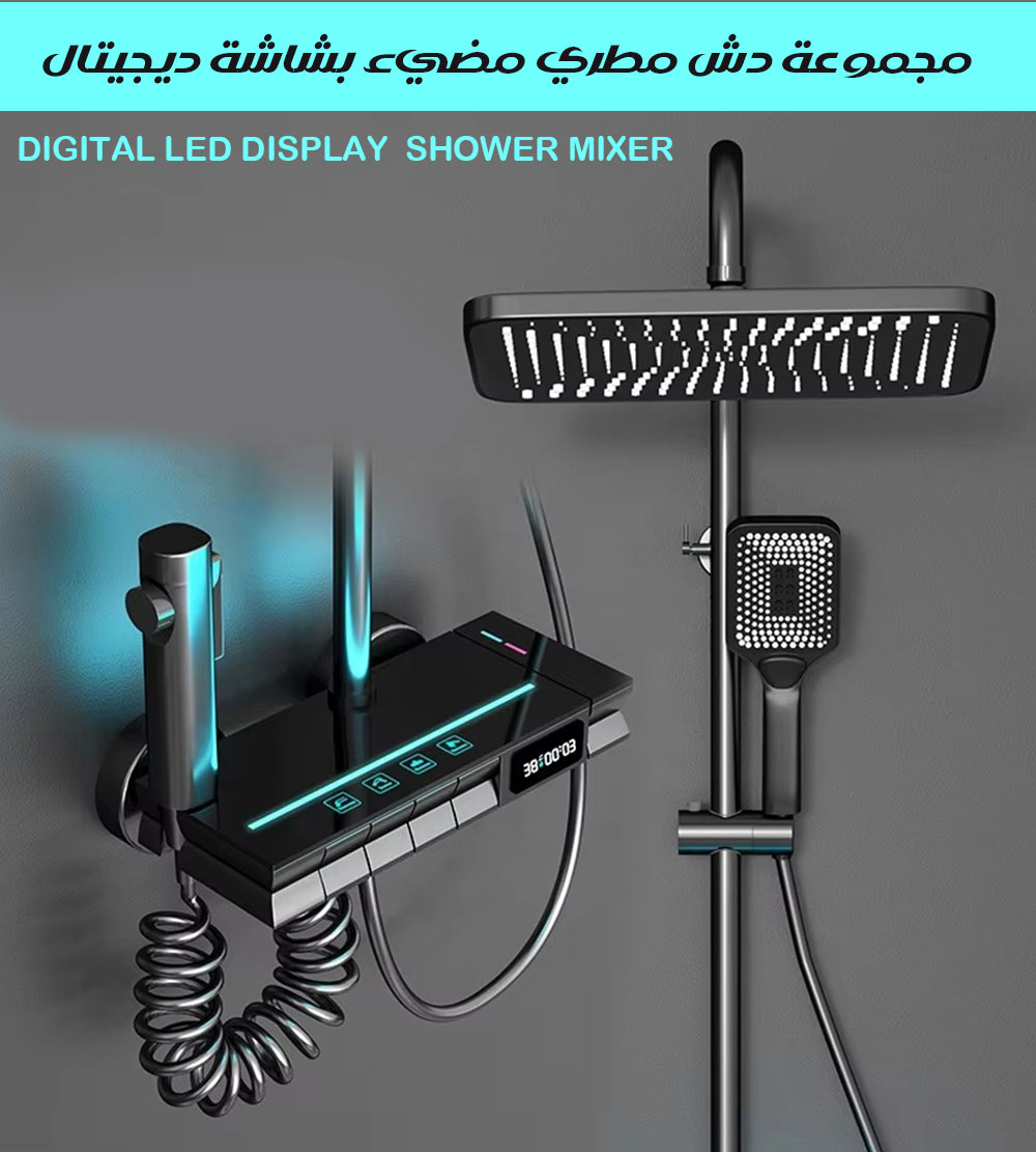 مجموعة دش مطري مضيء بشاشة ديجيتال Digital Led Display Shower Mixer Q-02