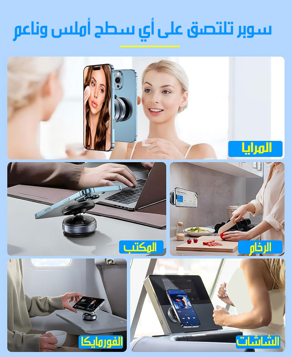 حامل موبايل سوبر مغناطيسي حرالحركة تلتصق بسحب الهواء Vacuum Suction Magnetic Bracket